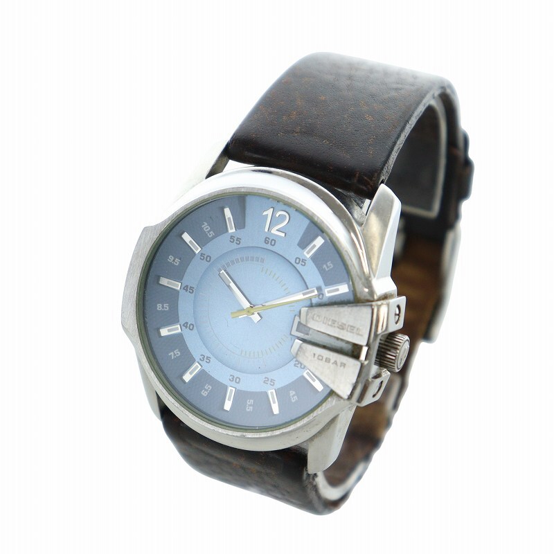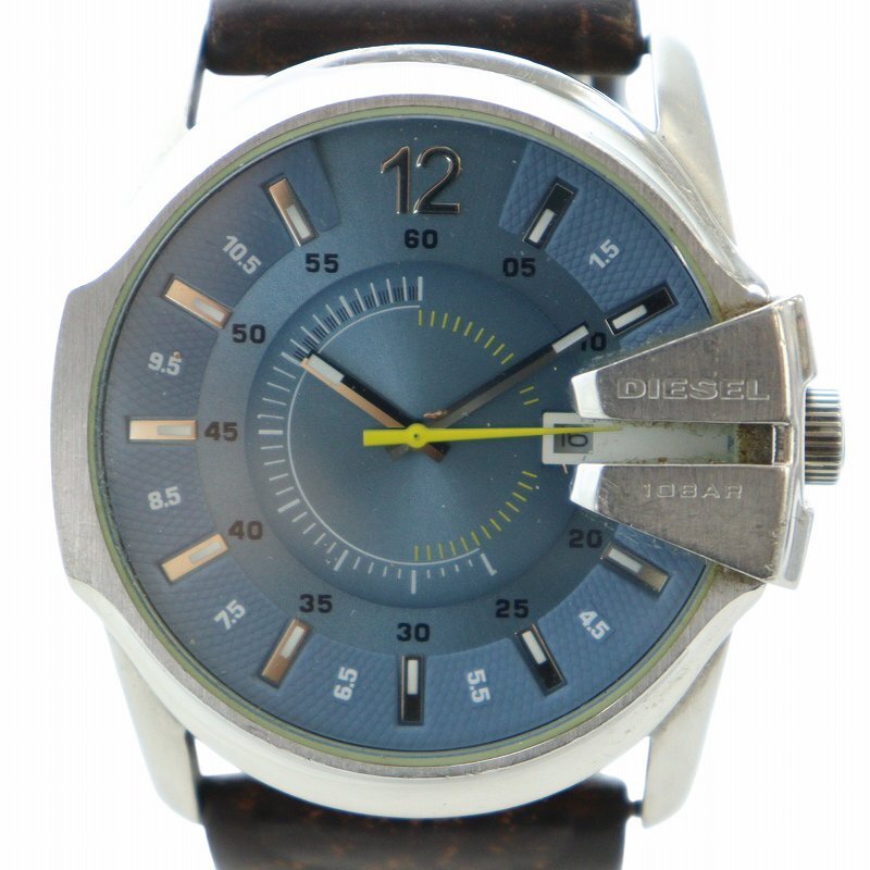 ディーゼル DIESEL 腕時計 ウォッチ クォーツ ロゴ カレンダー付き ビッグフェイス 青文字盤 シルバー色 DZ-1399 ■GY18 /MQ メンズ