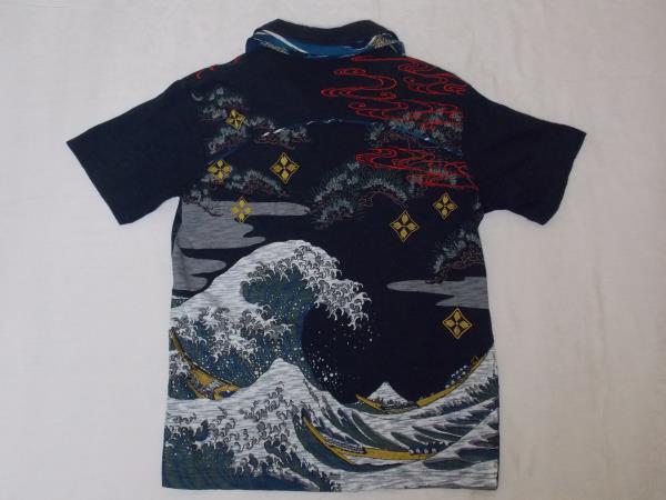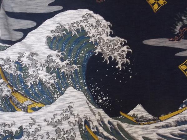 送料無料 希少 和柄 葛飾北斎 冨嶽三十六景 千円札絵柄 二重襟 ネイビー色系 サイズ [M] USED 良品です。