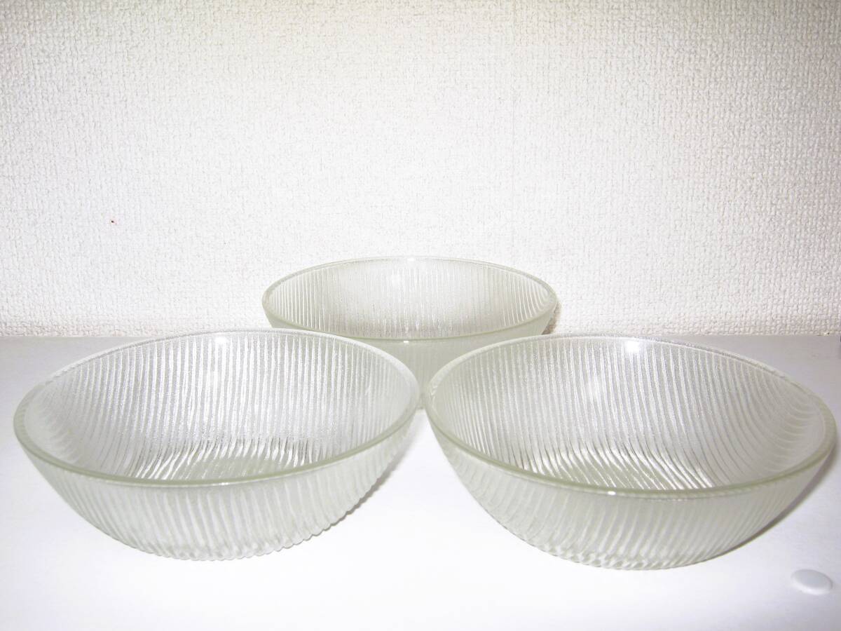 250gと重量感のある丈夫な作りのガラスボウル3個セットです。