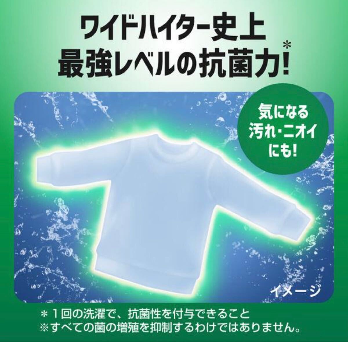 衣類のニオイ菌の増殖を抑え、抗菌シールド*1*2!洗濯槽のカビ*2・ニオイも防ぐ!清潔衛生の頂点へ(ワイドハイター液体タイプ)