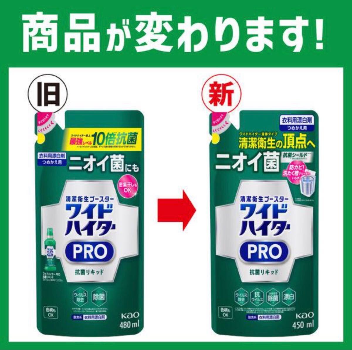 ワイドハイターPRO 抗菌リキッド 衣料用漂白剤 清潔衛生の頂点へ ニオイ菌 抗菌シールド!抗ウイルスも! つめかえ用450ml×2個