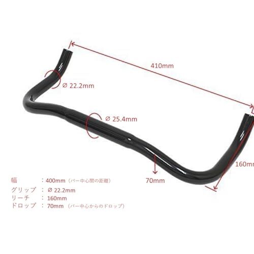 ハンドルサイズ(約):ハンドル幅 400?(芯-芯)、バーサイズ(直径) 22.2mm、クランプ径 25.4mm