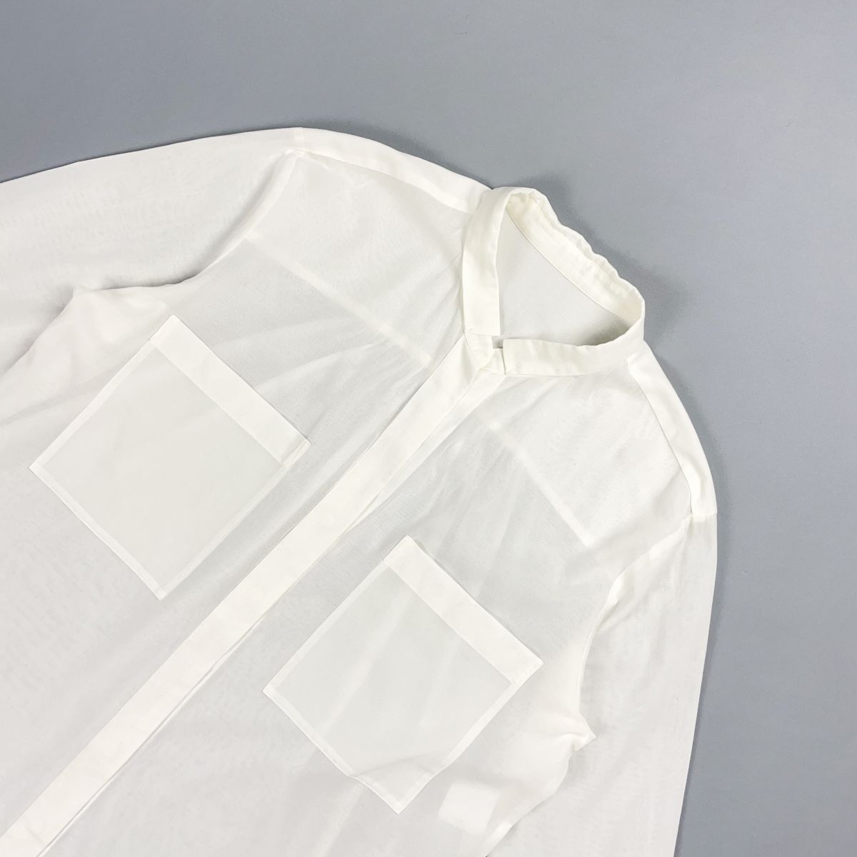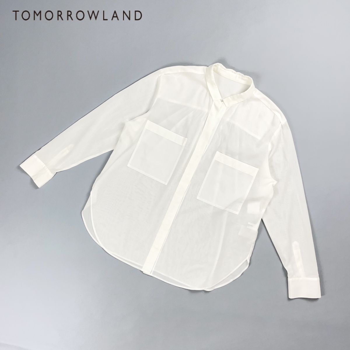 TOMORROWLAND トゥモローランド スキッパーシアーシャツ 長袖ブラウス 比翼仕立て 胸ポケット レディース 白 ホワイト サイズ36*CD448