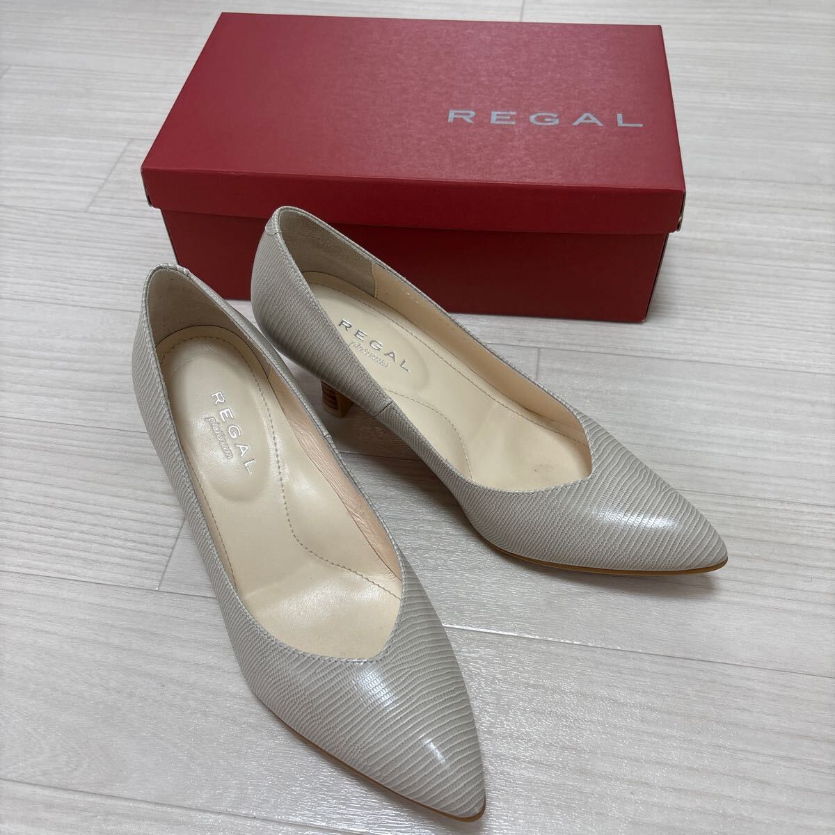 REGAL リーガル 靴 レディース ポインテッドトウパンプス 本革 レザー オーク型押し 通勤 日本製 サイズ23.5cm 美品