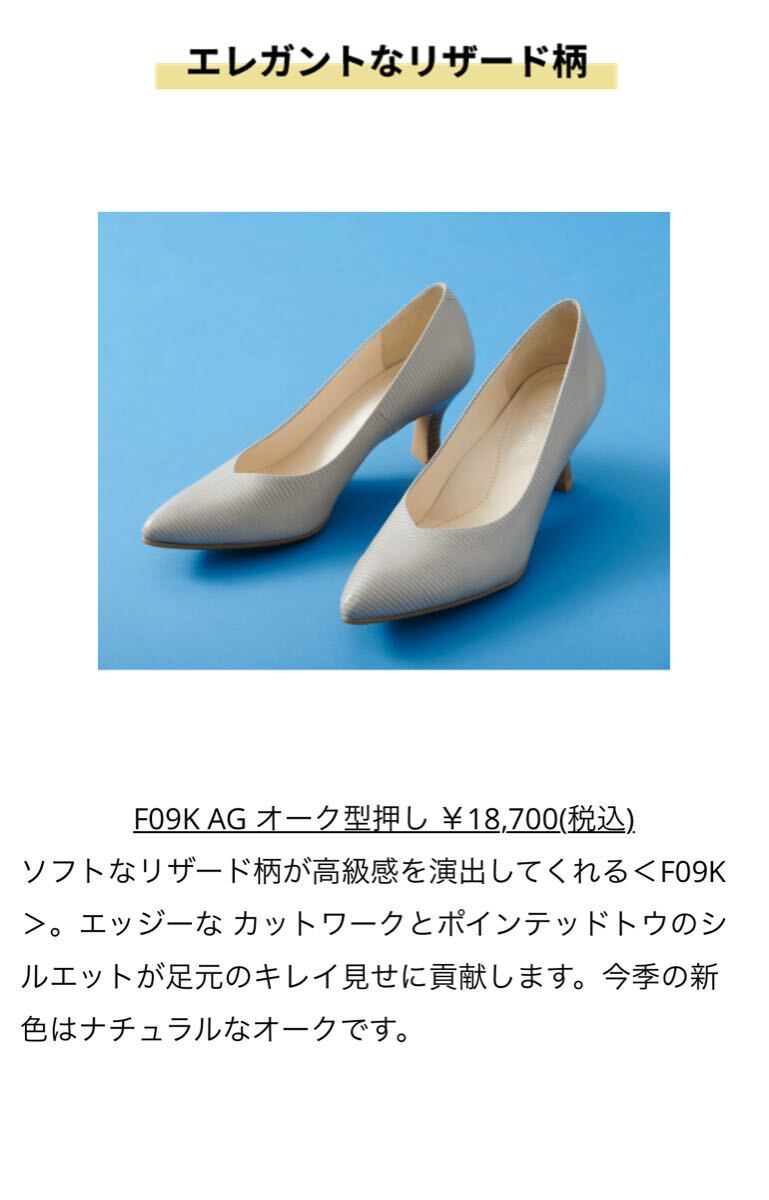 ソフトなリザード柄が高級感を演出してくれる<F09K>。エッジーな カットワークとポインテッドトウのシルエットが足元のキレイ見せに貢献します。今季の新色はナチュラルなオークです。