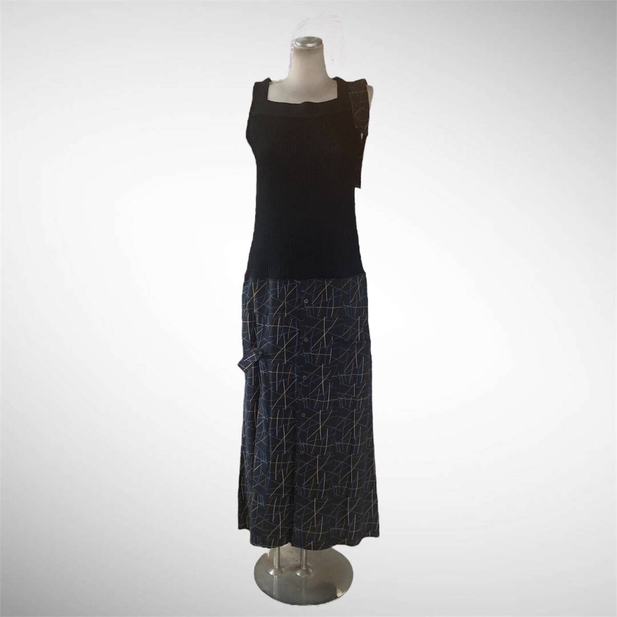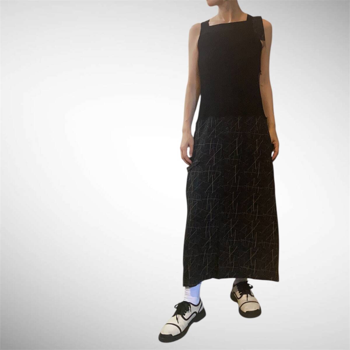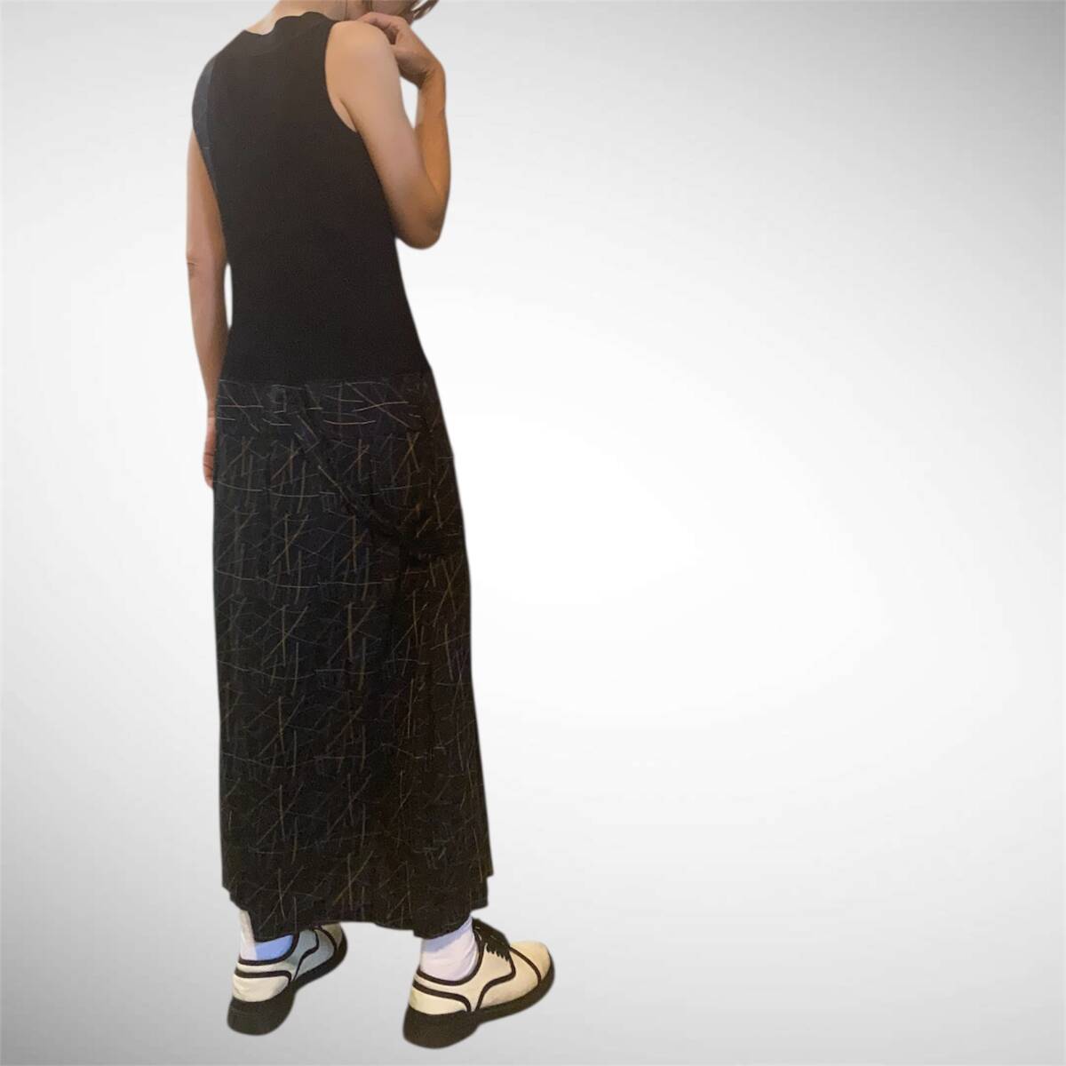 【着画あり】ノースリーブ ドッキングワンピース/ブラック×ブラック柄/1点物/古着リメイク