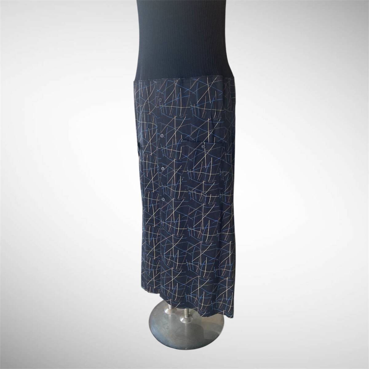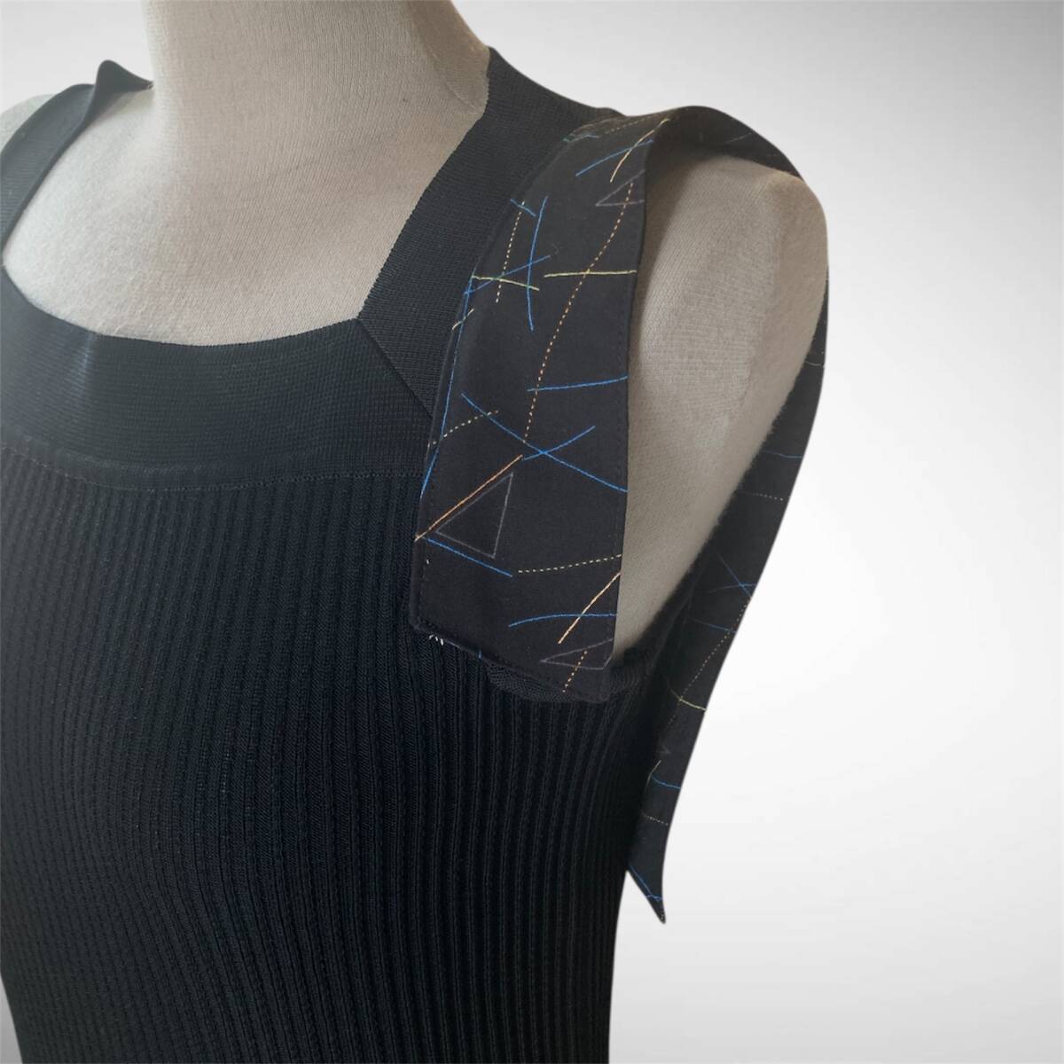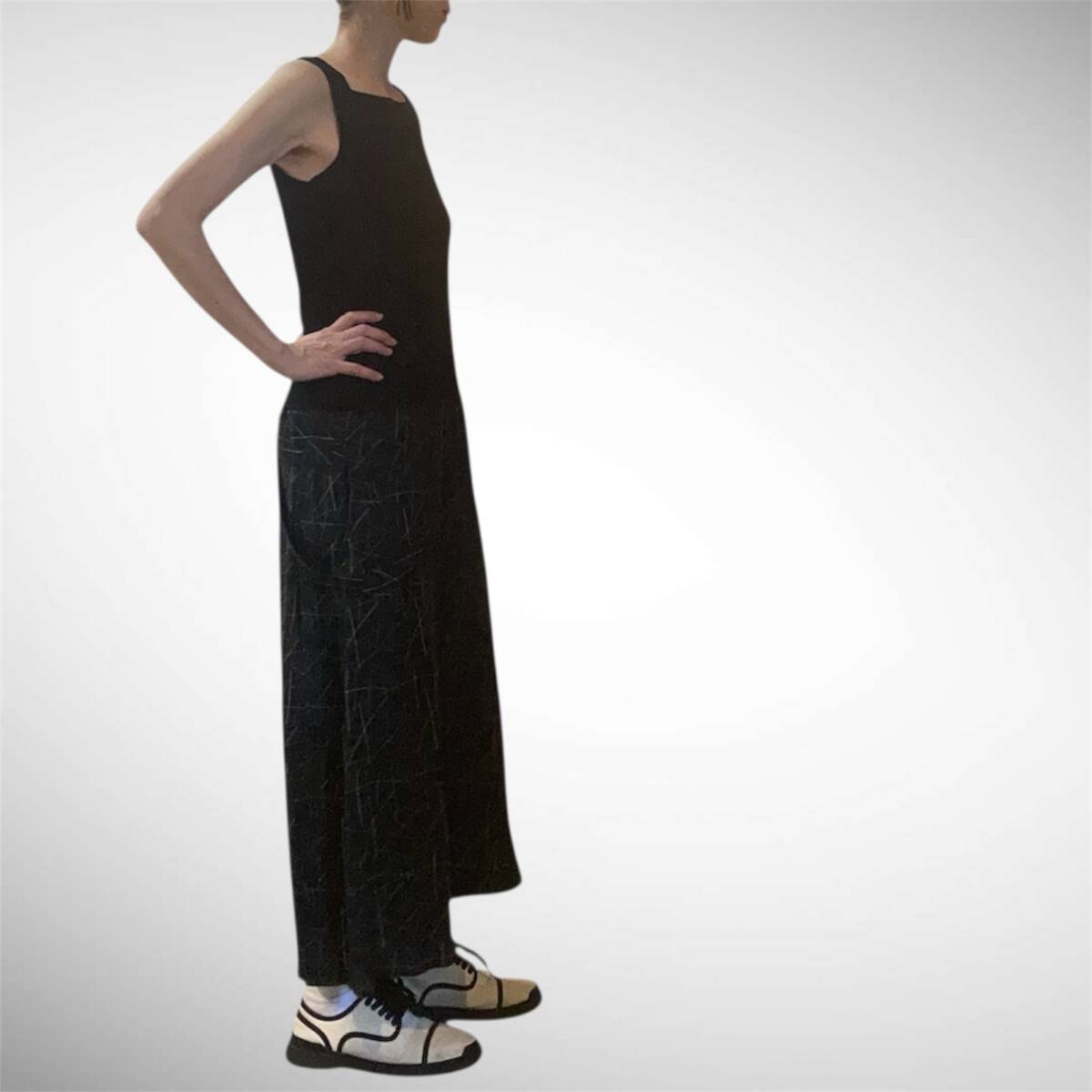 【着画あり】ノースリーブ ドッキングワンピース/ブラック×ブラック柄/1点物/古着リメイク