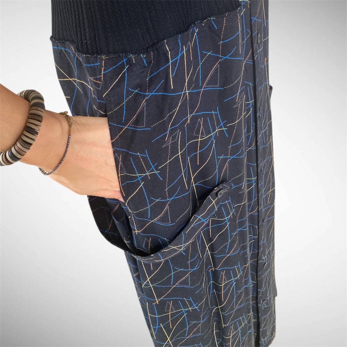 1枚でスタイリングが決まる存在感がありながら、インナーや羽織りとの重ね着にも対応。日常にちょっとした驚きとオリジナリティを加えてくれる、大人のためのリメイクワンピースです。