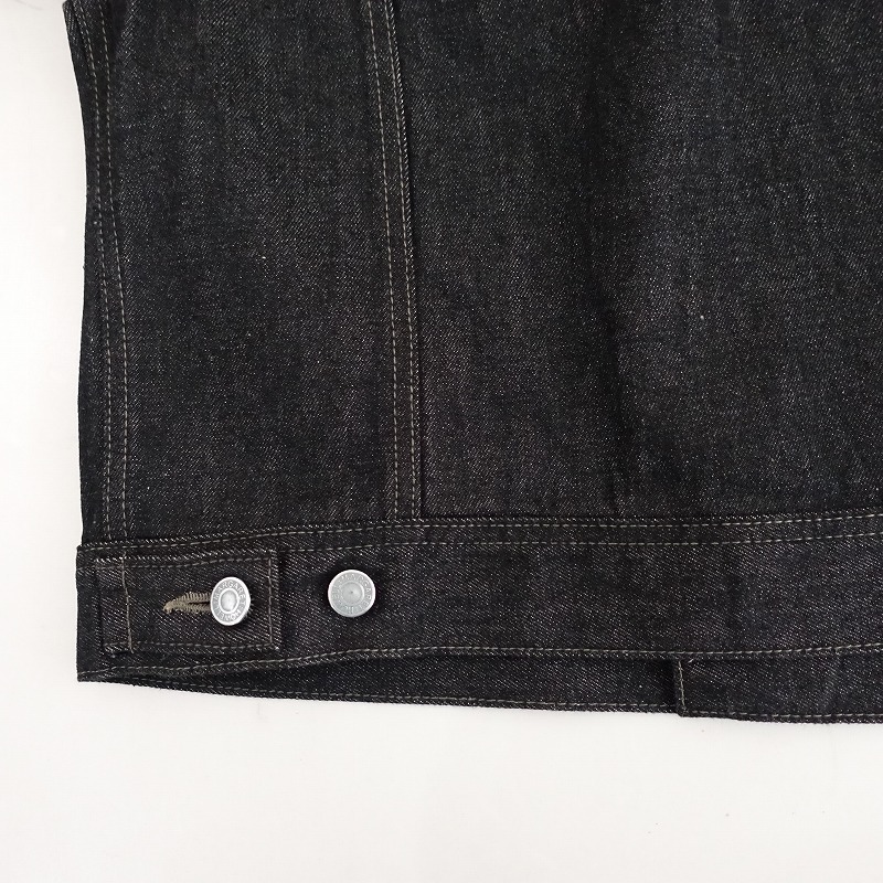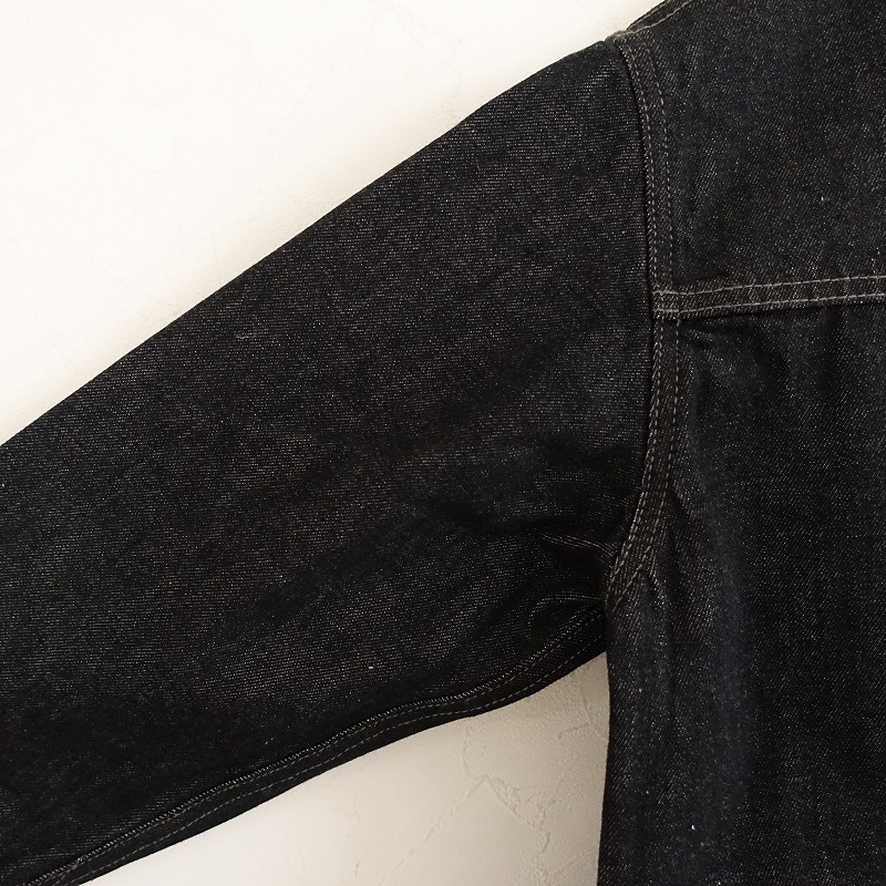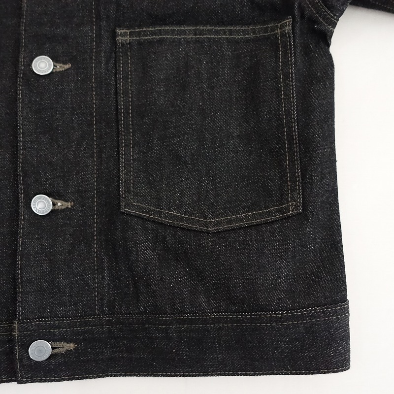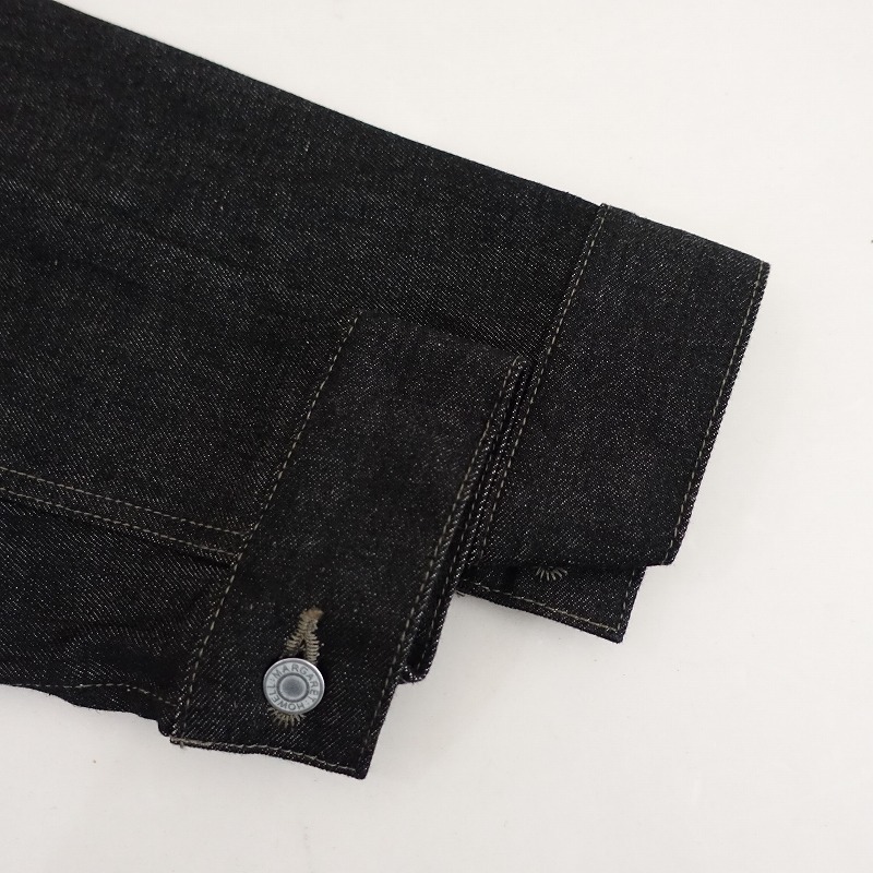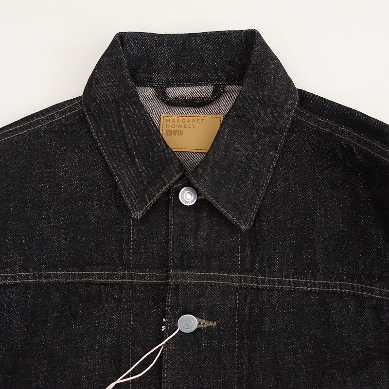 | 2024年春夏コレクション MARGARET HOWELL×EDWINのORGANIC COTTON DENIM ジャケットです。カラーはブラックで、コシのあるデニム地です。フロント&袖口ボタンで着脱でき、後ろ裾両サイドに2段階調節可能なタブボタン付きで、フロント左にパッチポケットがございます。定価(メーカー希望小売価格)52,800円の商品です。 |