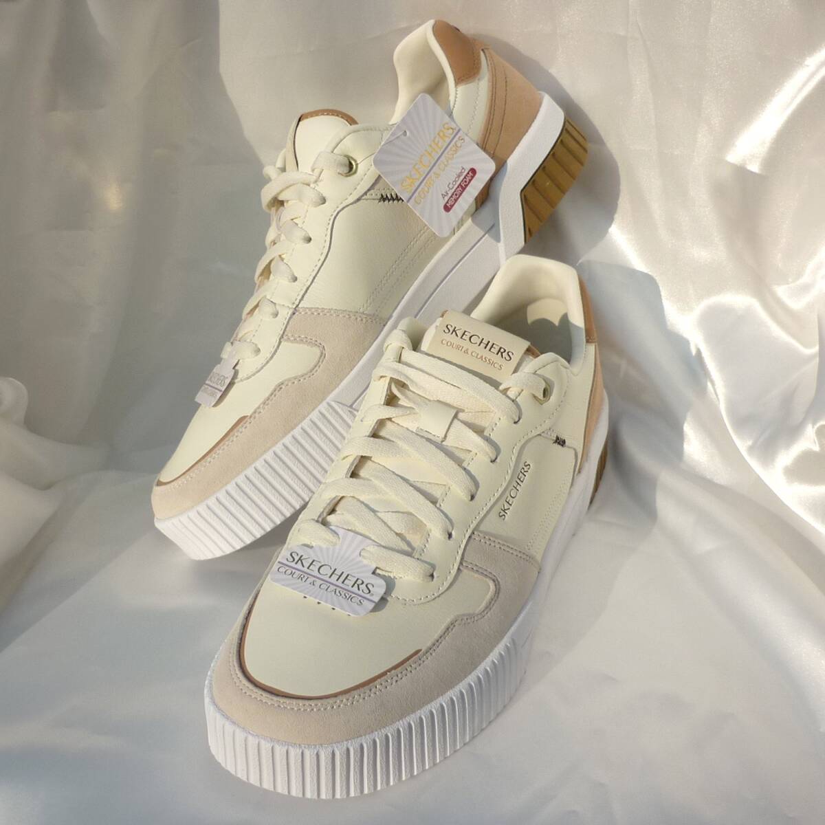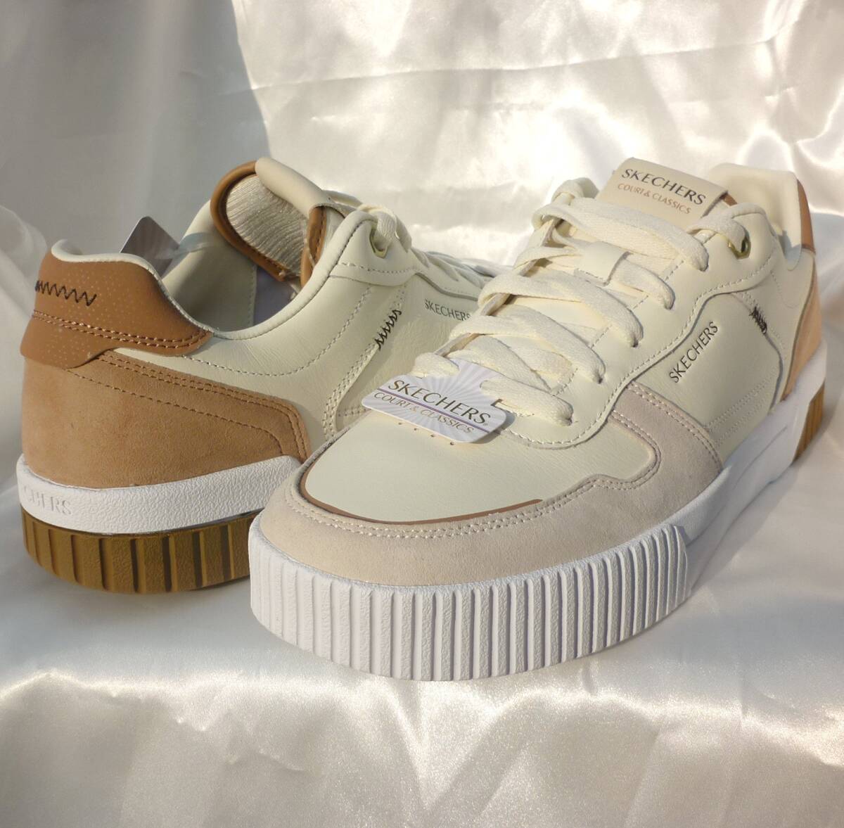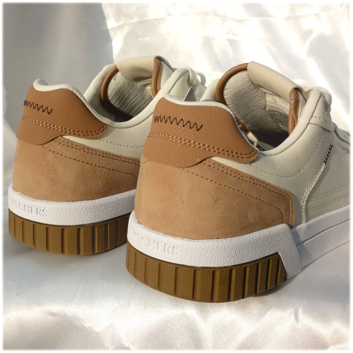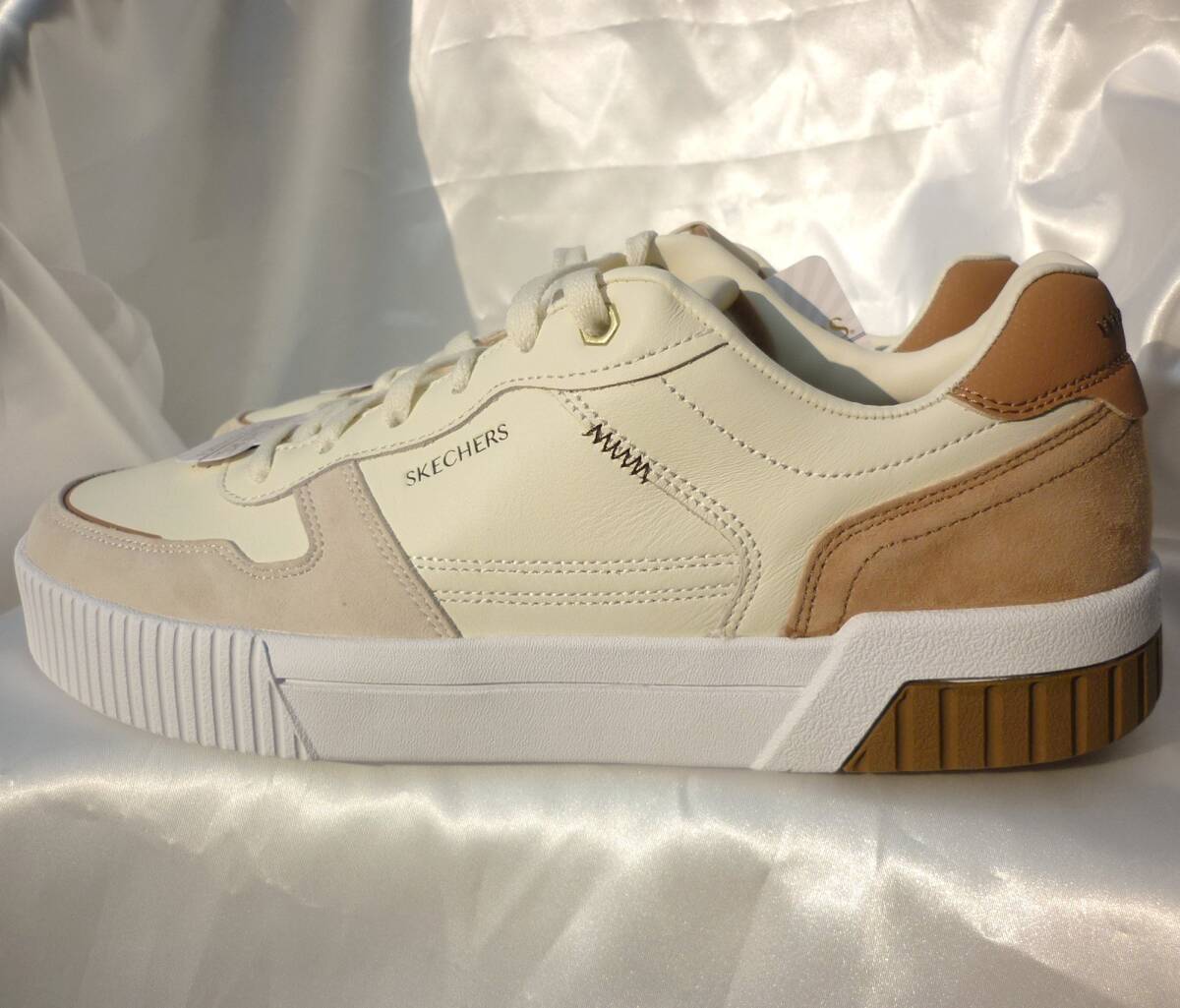 新品未使用品です優雅なコート スタイルを楽しめるスケッチャーズ ジェイド - コボス。ロートップのレースアップシューズ。スエードのオーバーレイが付いたレザー製アッパー、バルガナイズ(加硫)処理のミッドソール、クッション性のあるSkechers Air-Cooled Memory Foam(スケッチャーズ エアクールドメモリーフォーム)を採用した快適なインソールが特長です。クッション性のあるSkechers Air-Cooled Memory Foam(スケッチャーズ エアクールドメモリーフォーム)コンフォートインソールスエードのオーバーレイが付いたレザー製アッパーのレースアップ コートスタイル スニーカーバルカナイズ製法の衝撃吸収ミッドソールフレキシブルでトラクション性の高いアウトソールヒールの高さは約3.18cm(1 1/4インチ)スケッチャーズ正規品(直営店で購入) 品番254040-NTBR 定価11550円 326サイズ感:小さめ。0.5cm大きめをご検討下さい。(個人差がございますので、あくまでも目安ですが今までにご購入いただいたお客様はそれで丁度よかったとの声をいただいております)★商品タグは26.5cmですが26cmのカテゴリーに出品しております。