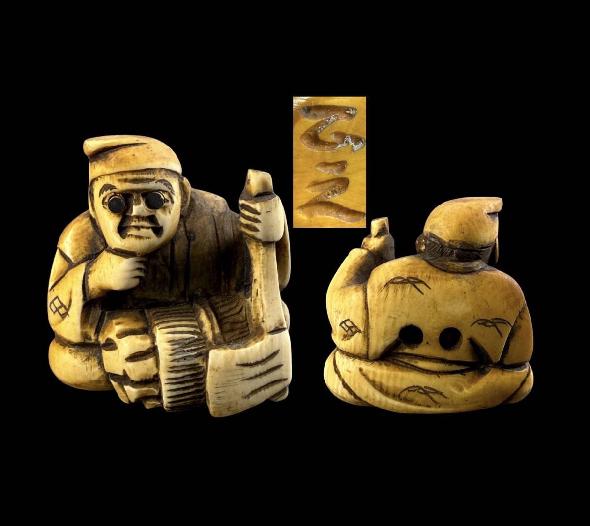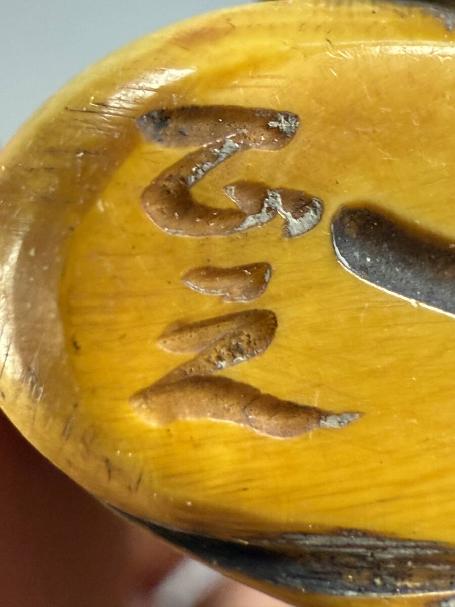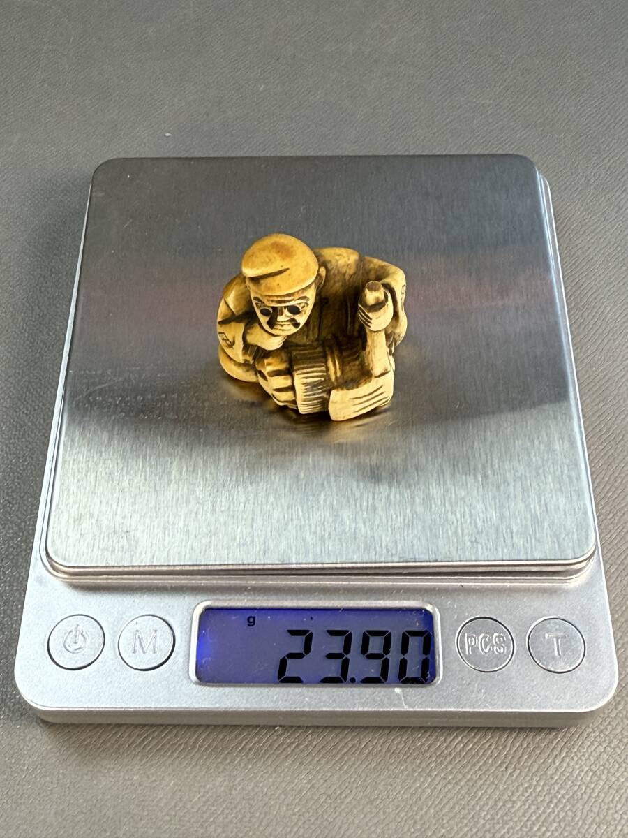 【偲】鯨歯風 天然白材 根付 人  細密彫根付 作家物 提物 彫刻 美品細密彫 」江戸時代  在銘 重約23.90g   r-658