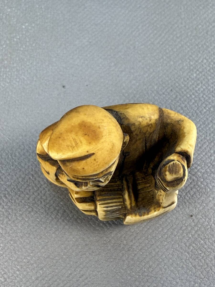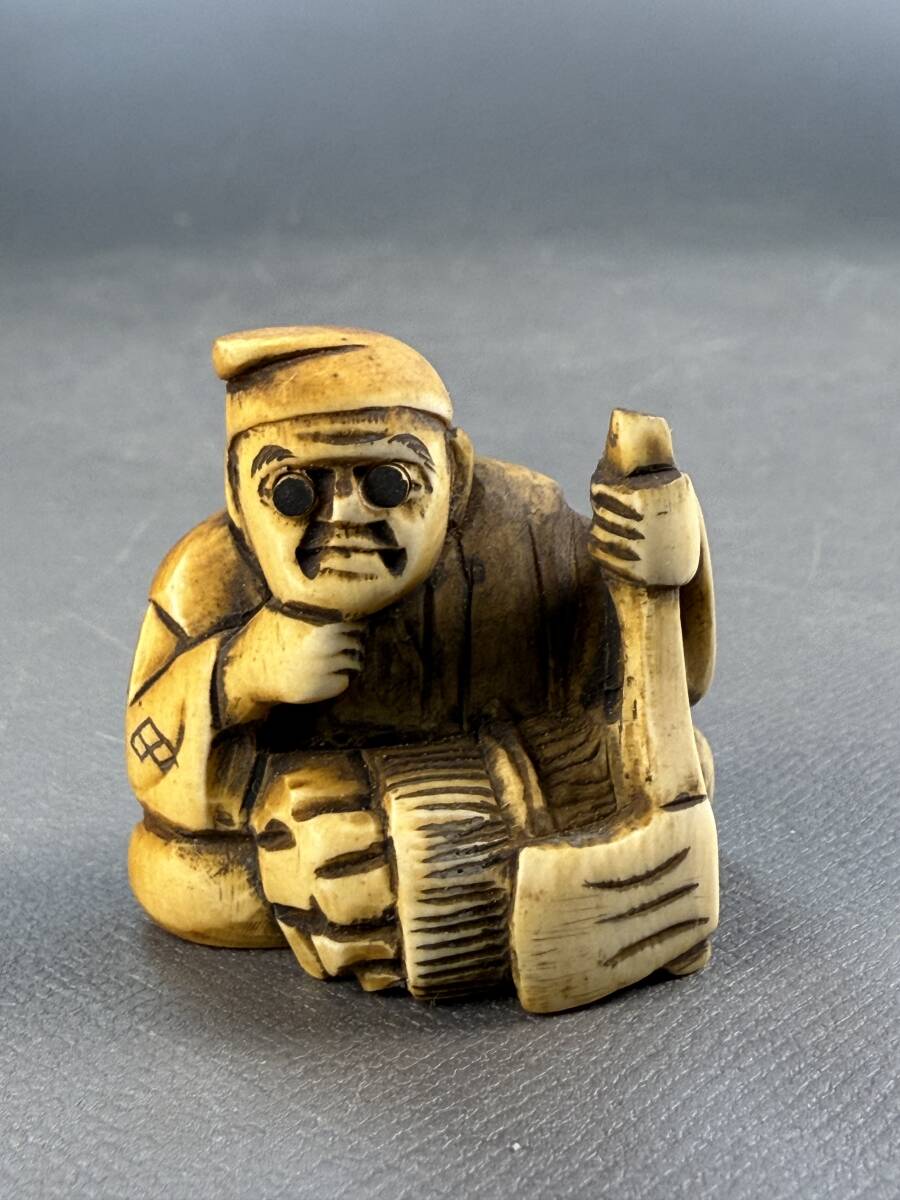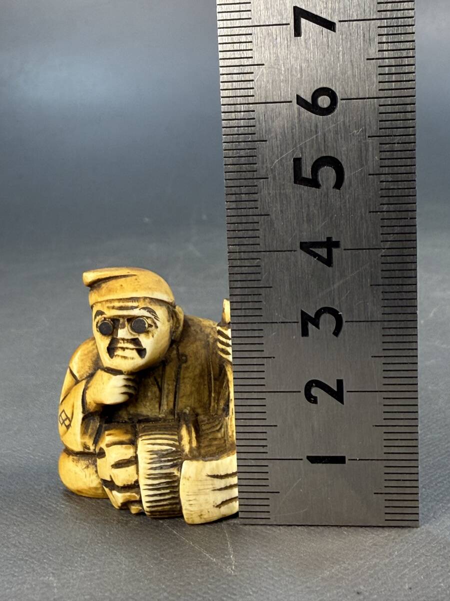 【偲】鯨歯風 天然白材 根付 人 細密彫根付 作家物 提物 彫刻 美品細密彫 」江戸時代 在銘 重約23.90g r-658