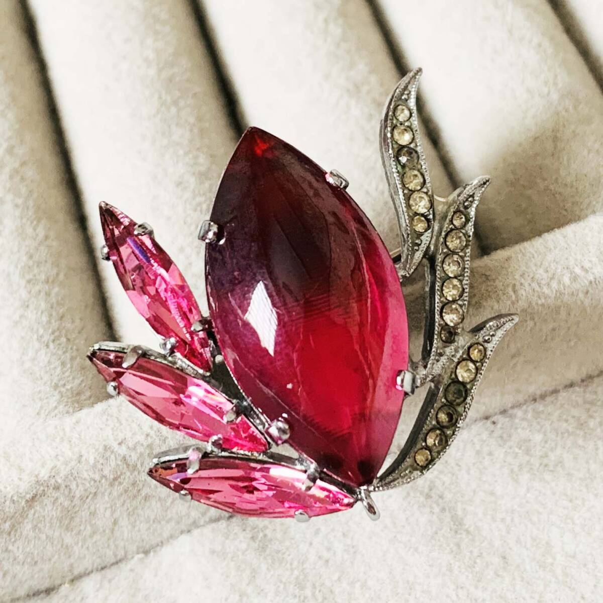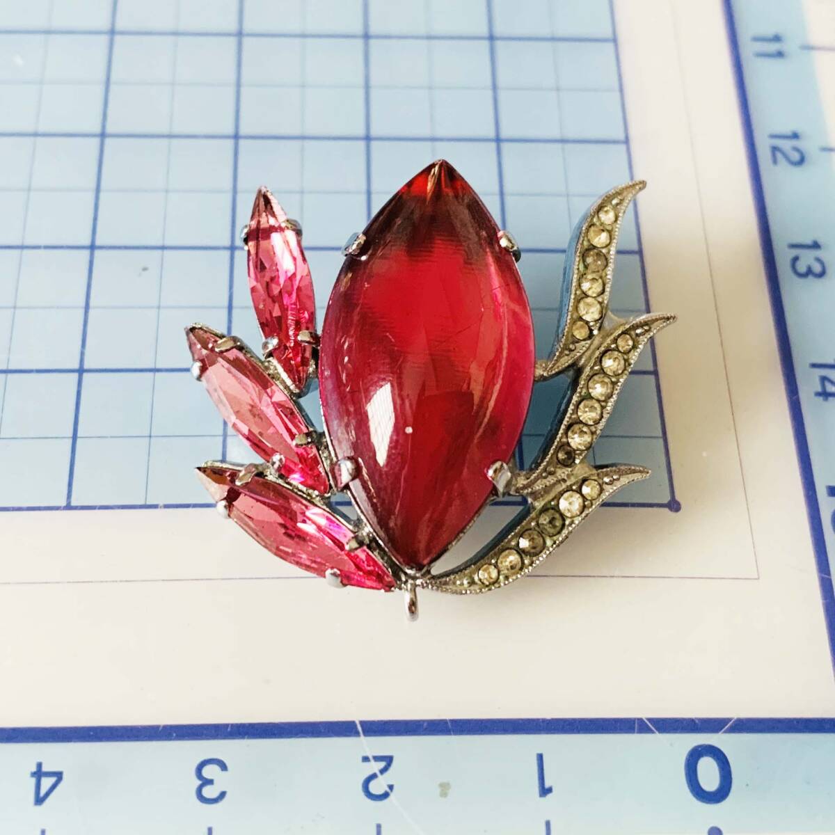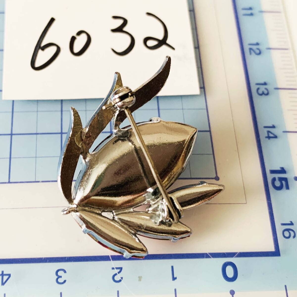ヴィンテージ ベネチアングラス 瑠璃ガラス 銀色 ブローチ No.6032