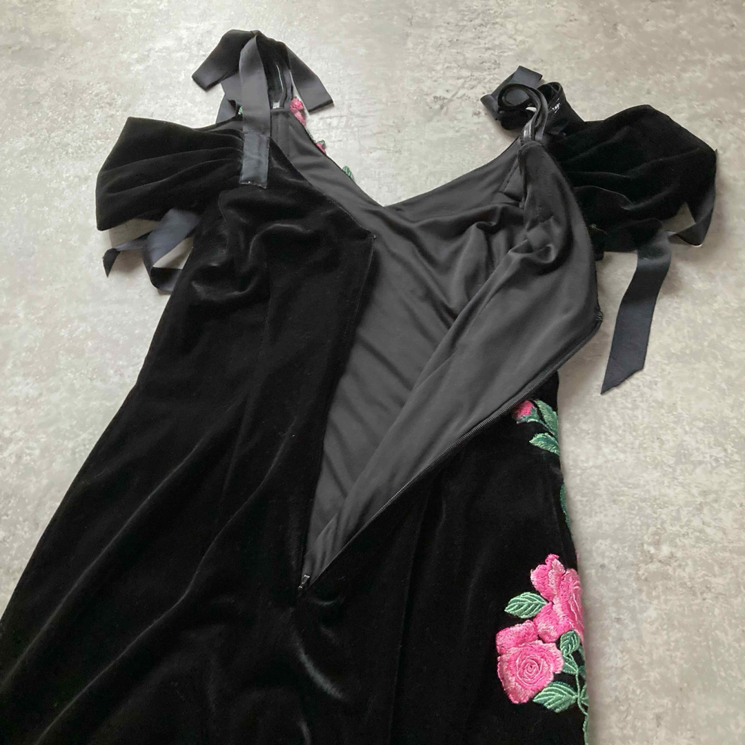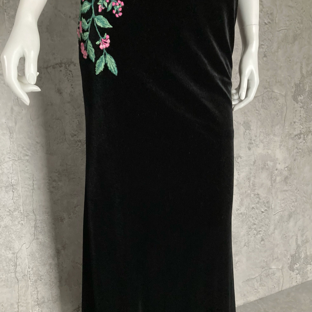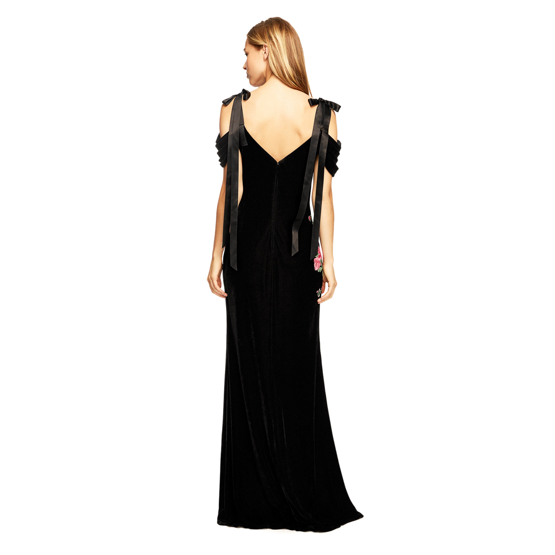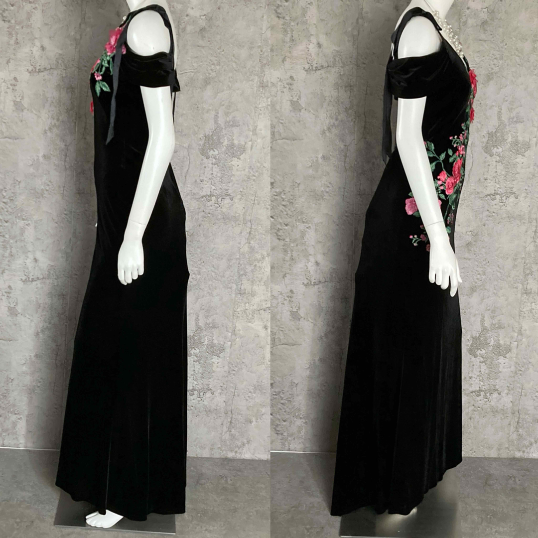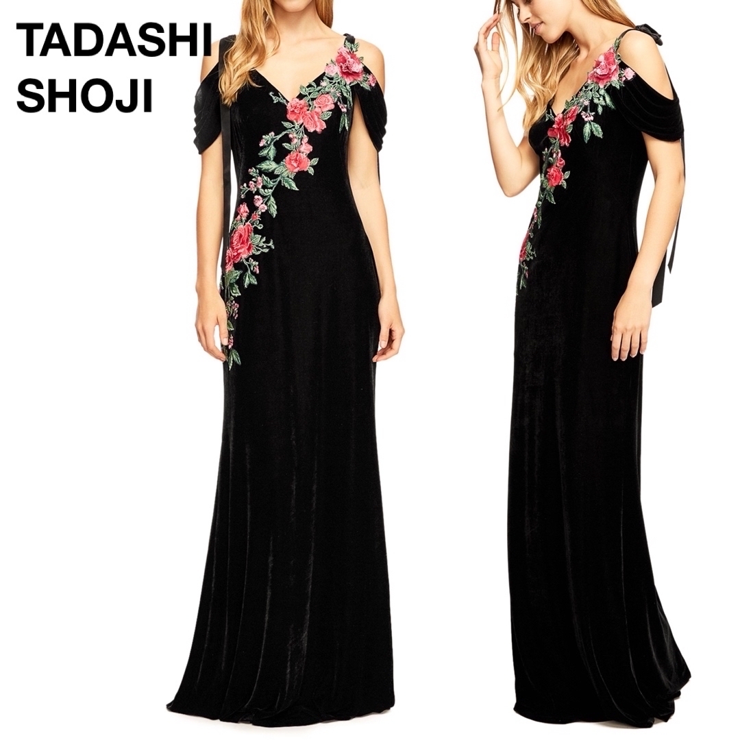 タダシショージ TADASHI SHOJI ロングワンピース マキシワンピース ベルベット ドレス ベロア 花柄 バラ 薔薇 刺繍 エンブロイダリー オープンショルダー 肩出し 二の腕カバー フォーマル パーティードレス カクテルドレス フィッシュテールスカート 美品