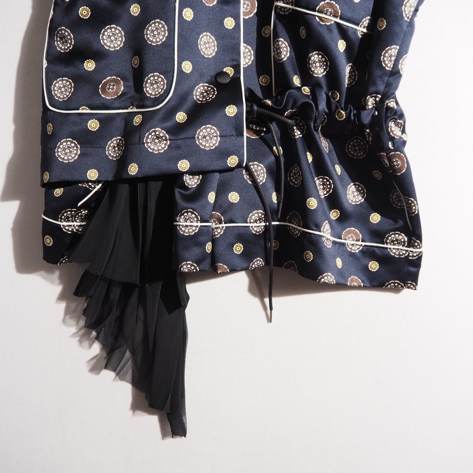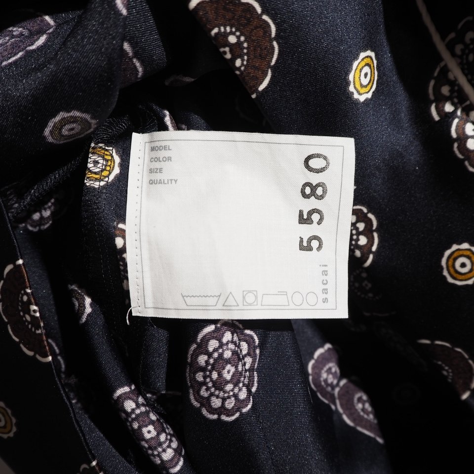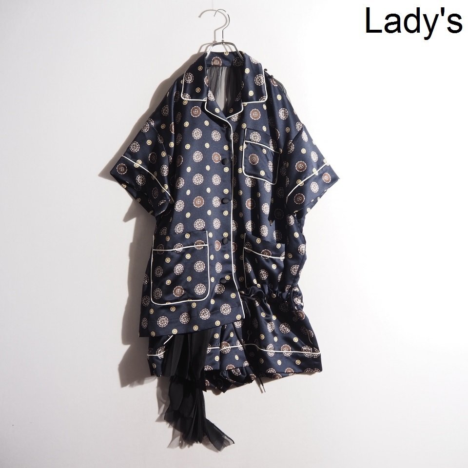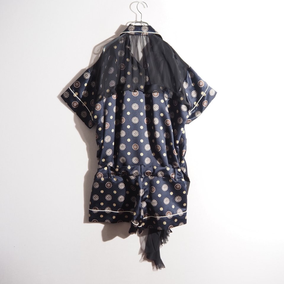 P3062P ▼sacai サカイ▼ Komon Print バックシアー サテン 半袖 シャツ ショートパンツ ドッキング オールインワン ネイビー 春夏 rb mks
