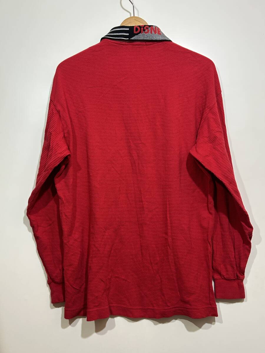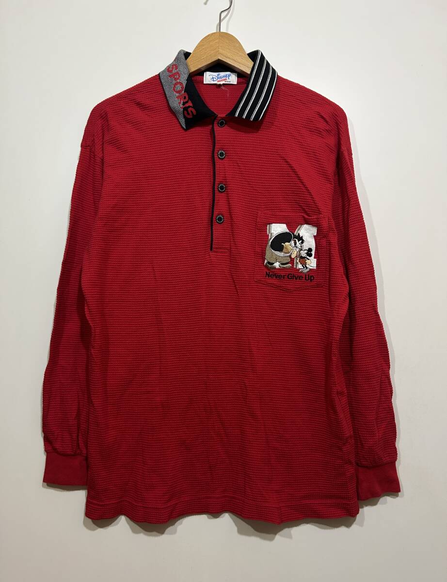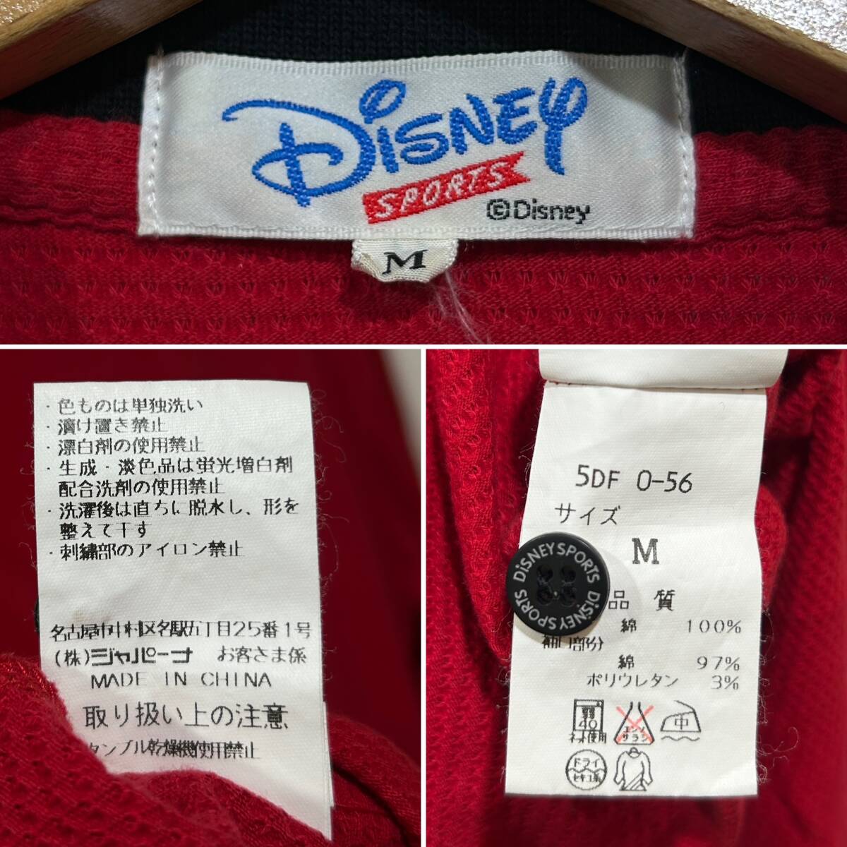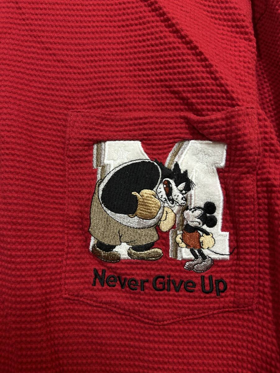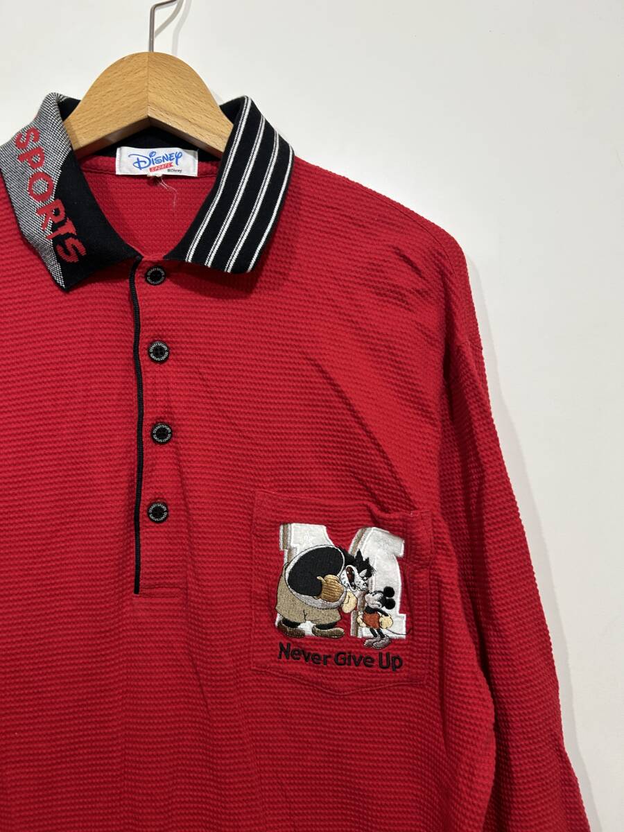 ★ オールド Disney SPORTS ミッキー ピート 刺繍 メンズ 長袖 ポロシャツ 赤 レッド M サーマル風 ワッフル生地 プルオーバー レトロ古着