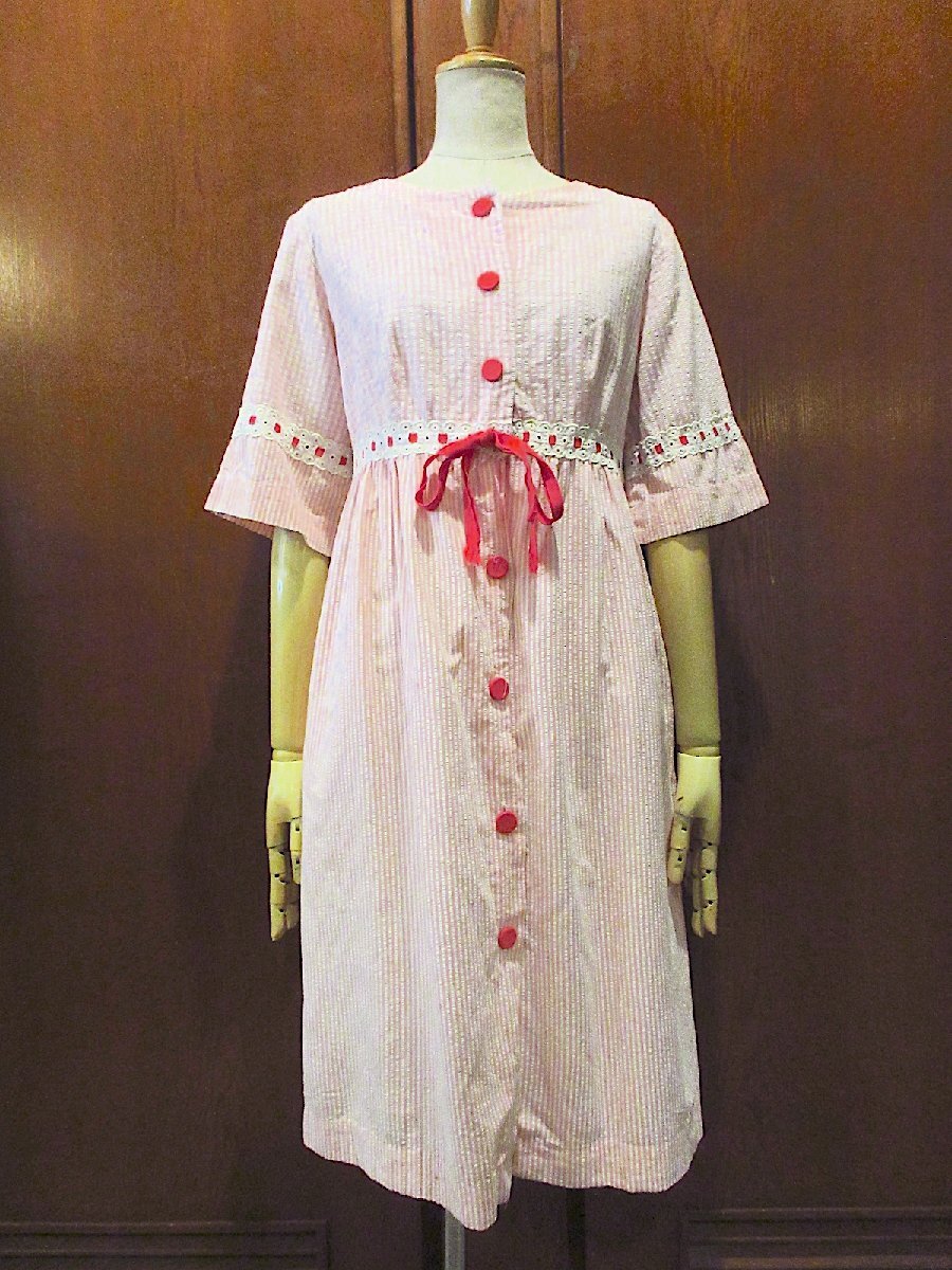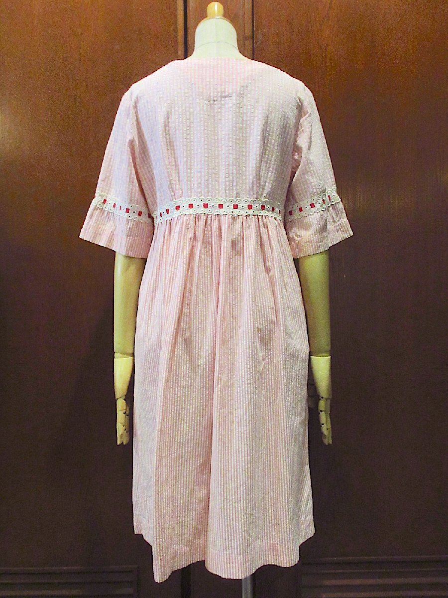 ビンテージ60's●シアサッカー半袖ワンピース●250622m5-w-ssdrsユニオンメイド米国製ドレスレディース古着