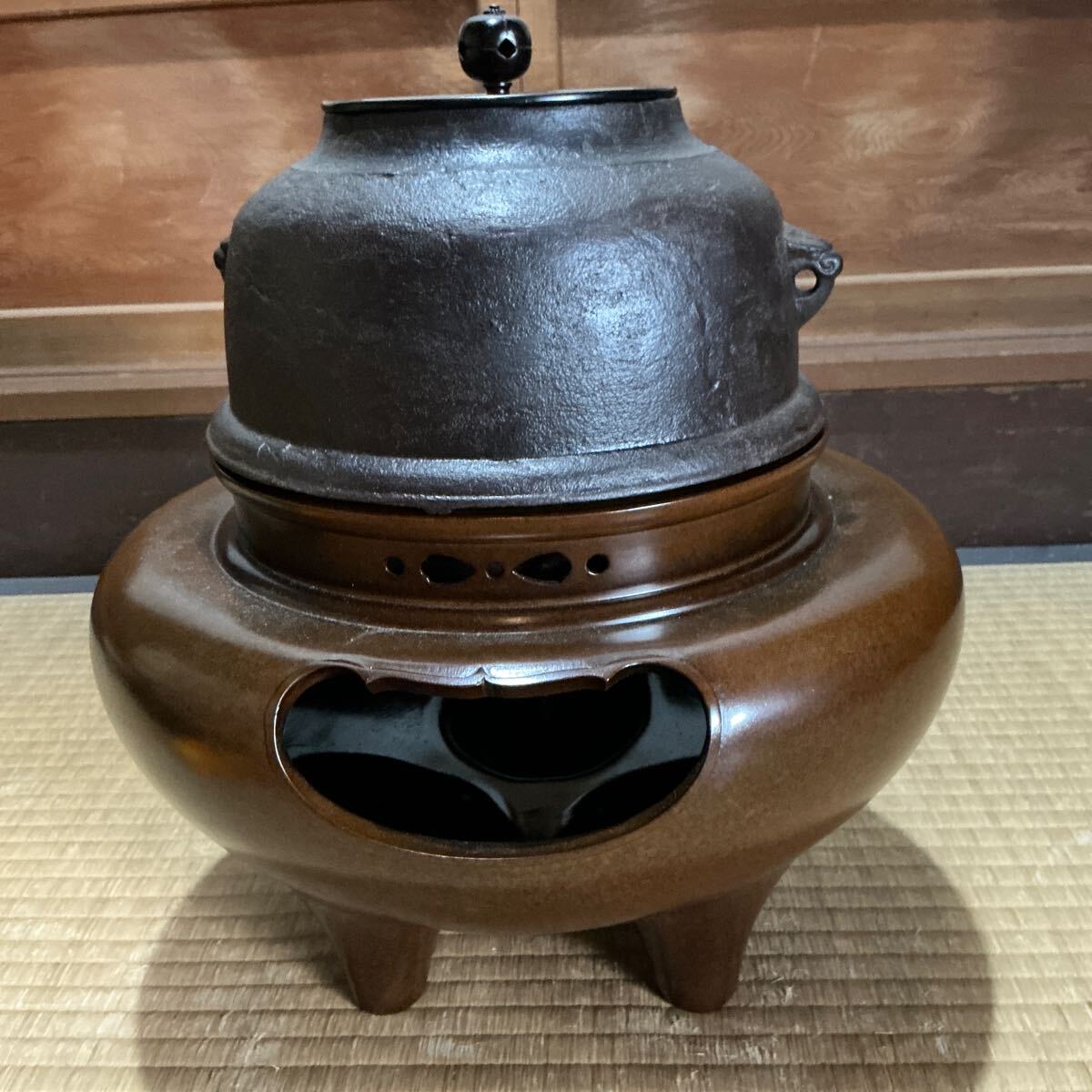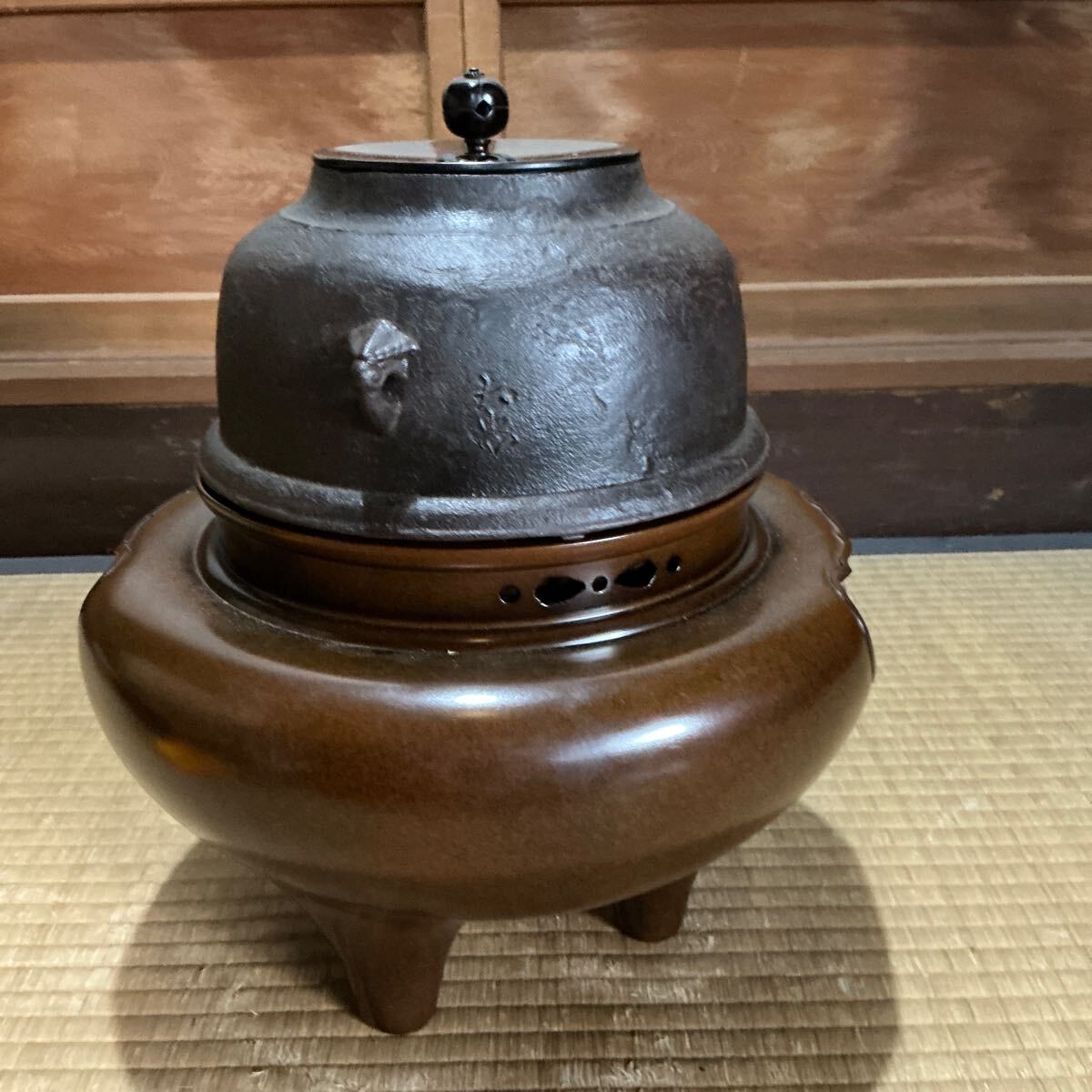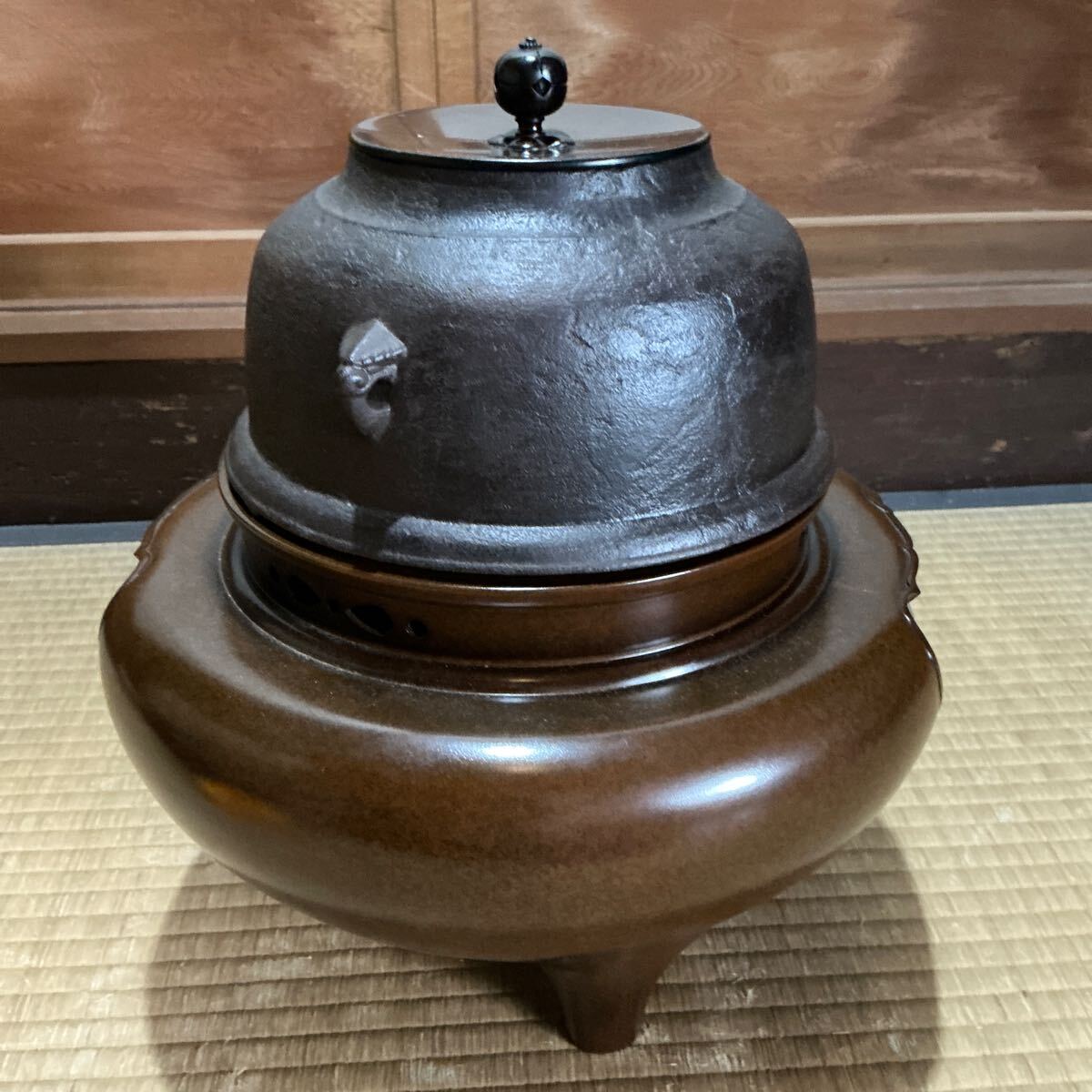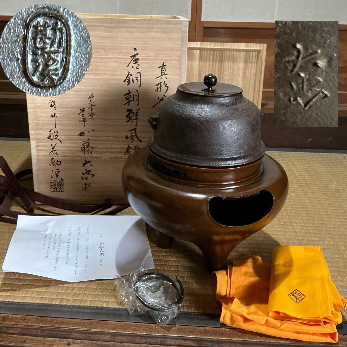 唐銅朝鮮風炉釜 鋳師 般若勘渓 在銘 真形釜添 金属工芸