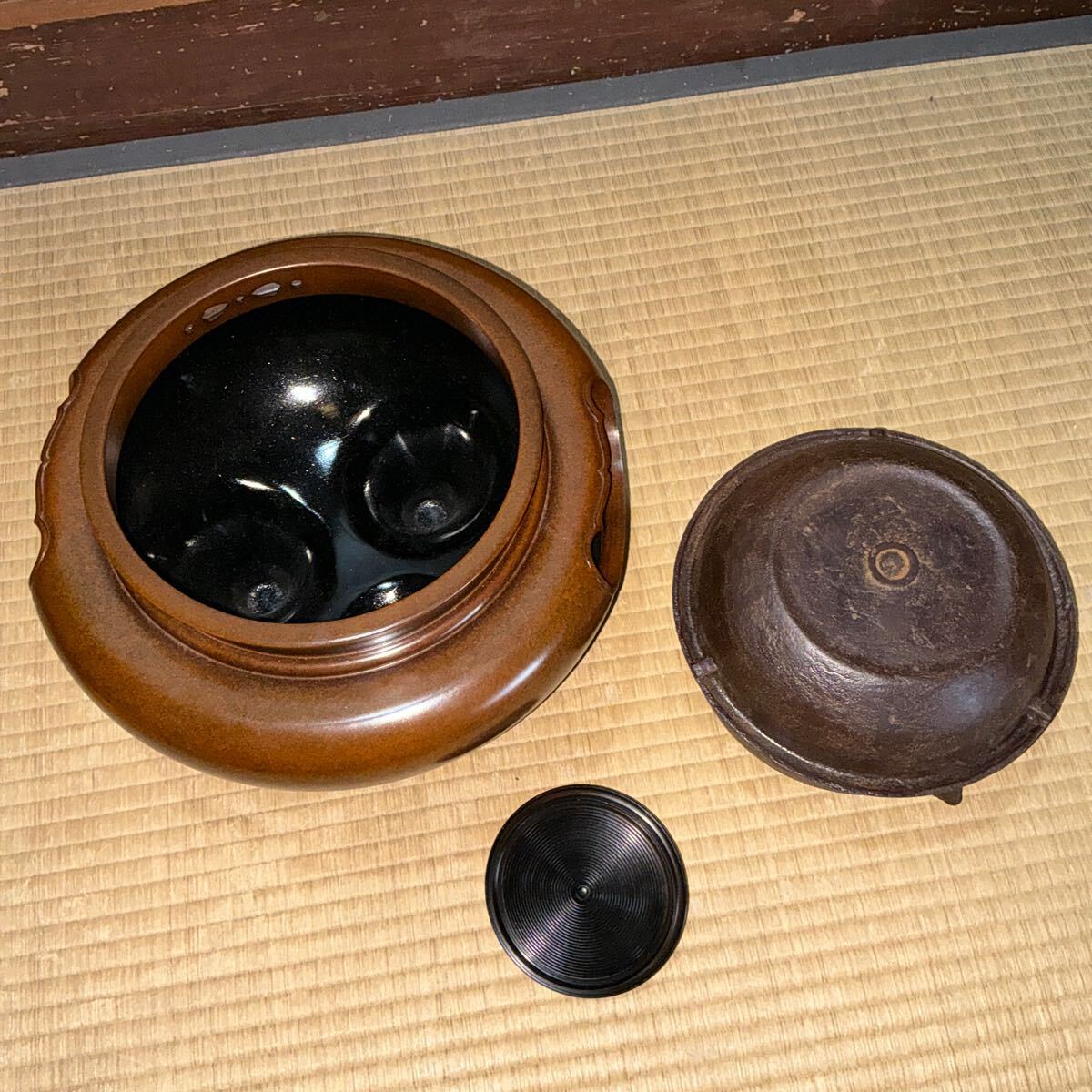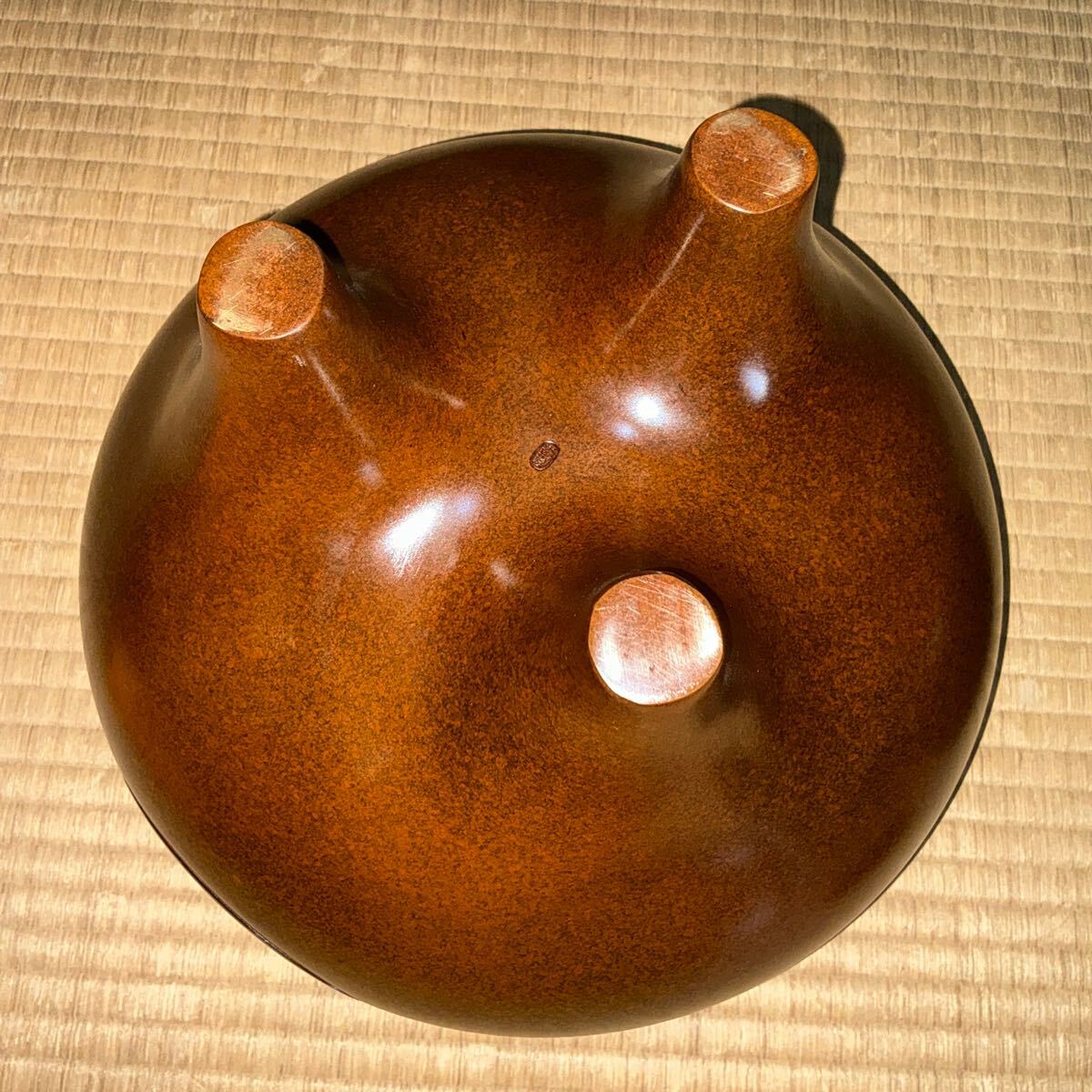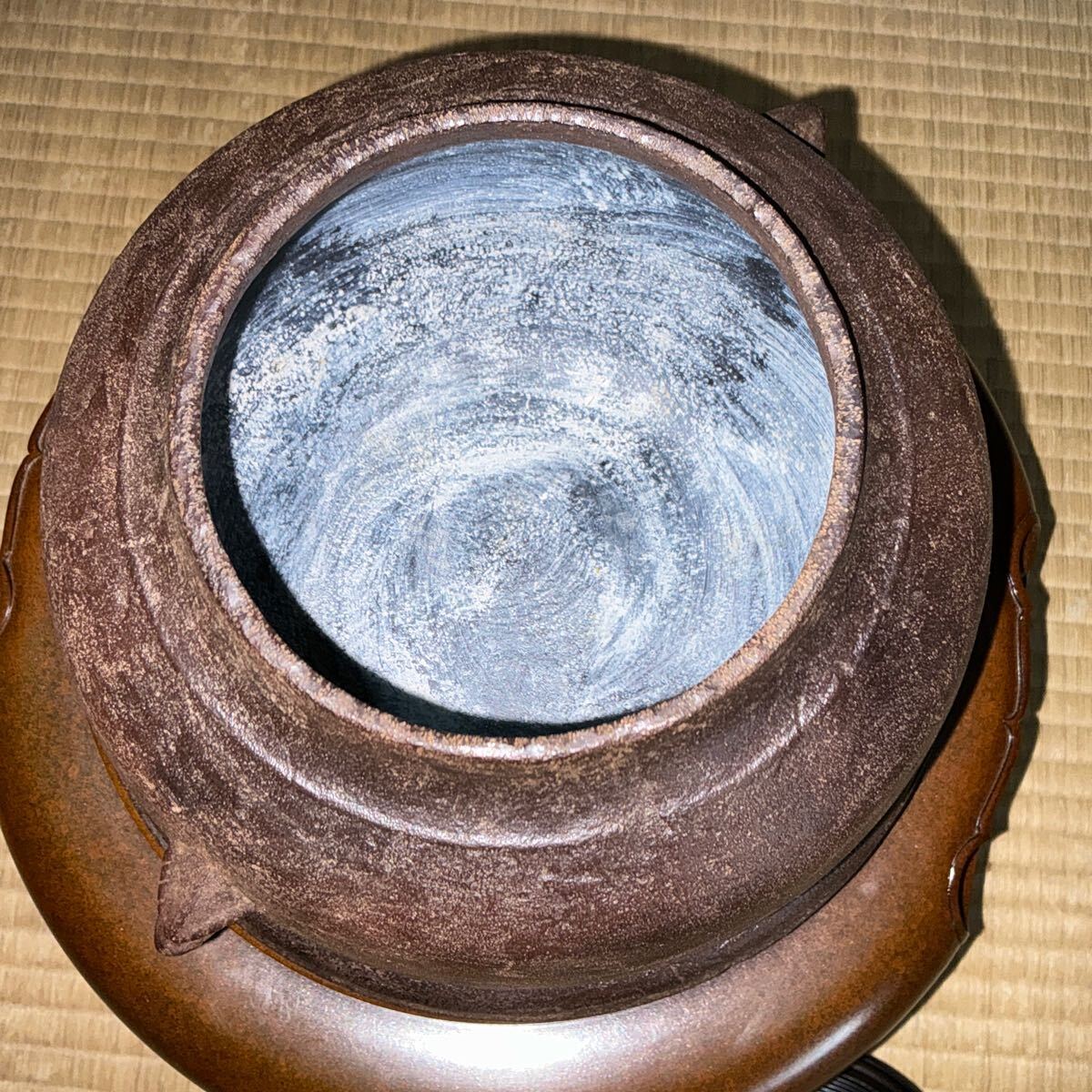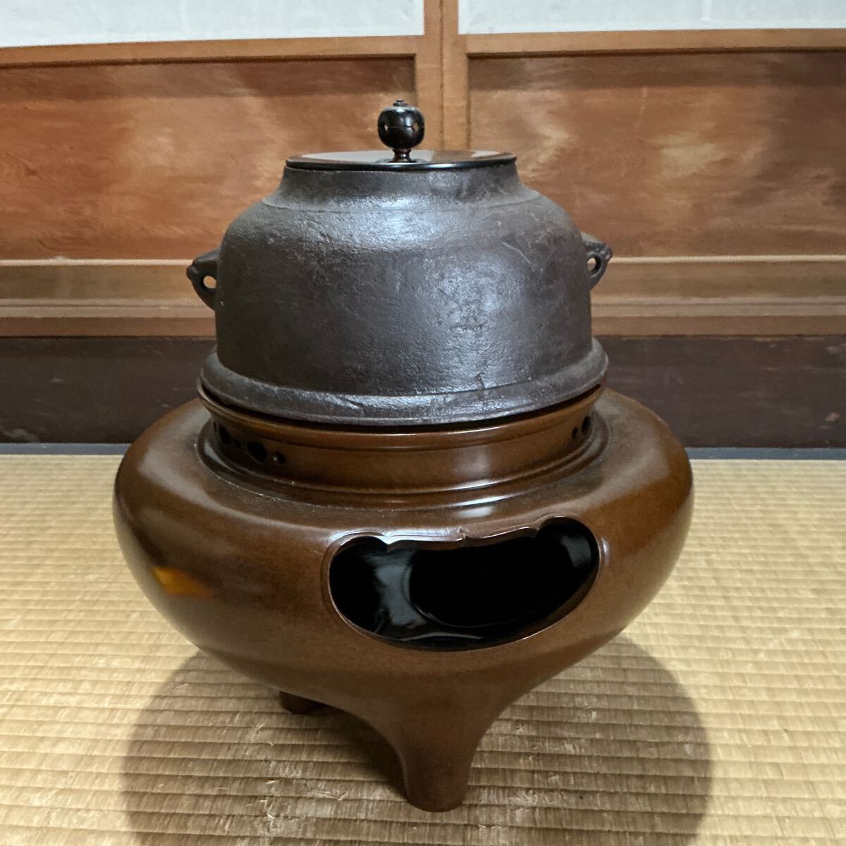 唐銅朝鮮風炉釜 鋳師 般若勘渓 在銘 真形釜添 金属工芸