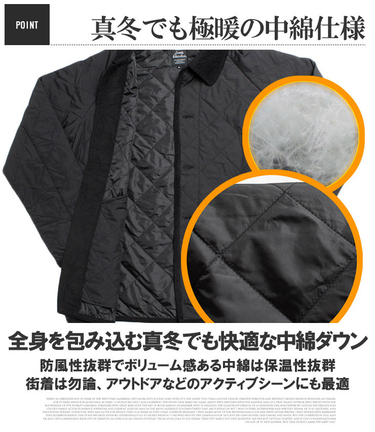 | 商品説明 | キルティング素材が保温性を高め、寒い冬も暖かく過ごせる中綿ダウンジャケットの登場です。 |