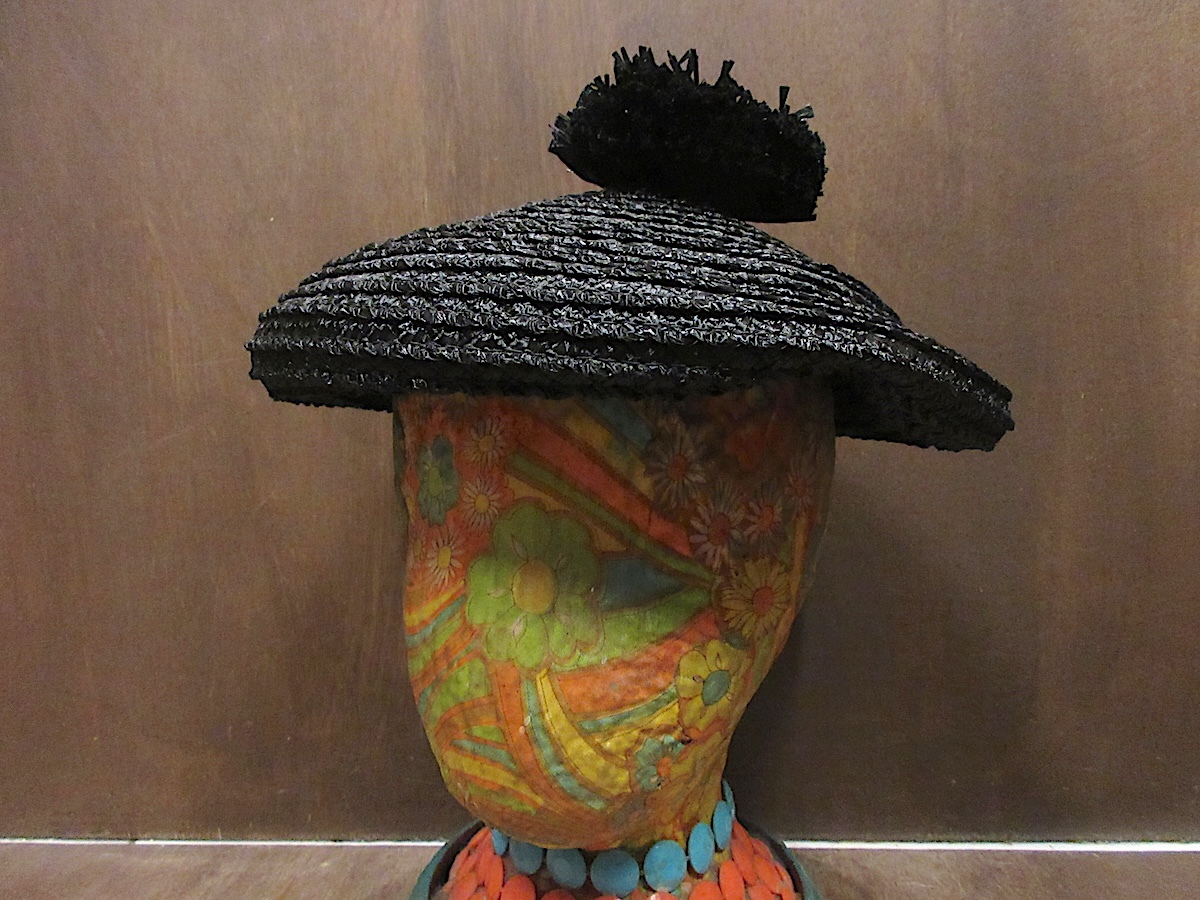 ビンテージ50’s60's●レディースボンボン付きビニルヘッドドレス黒●250618z5-w-hdブラックレトロ帽子ユニオンメイド