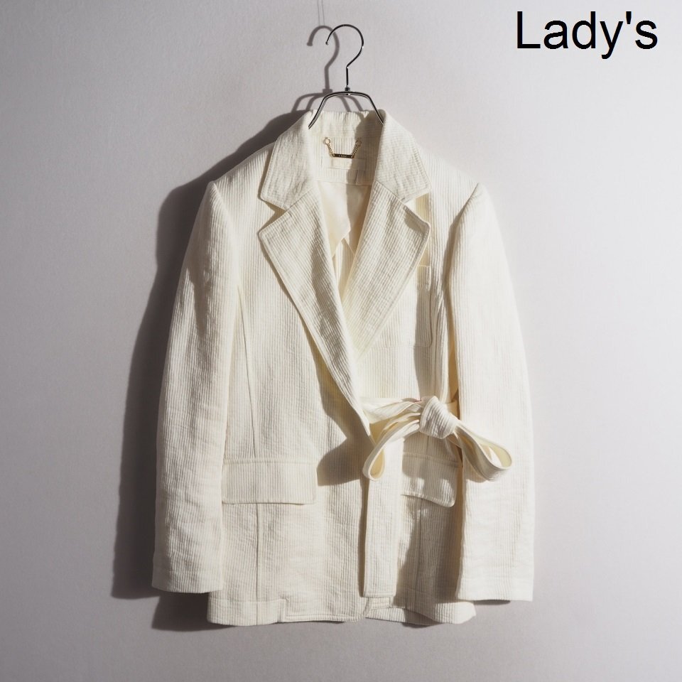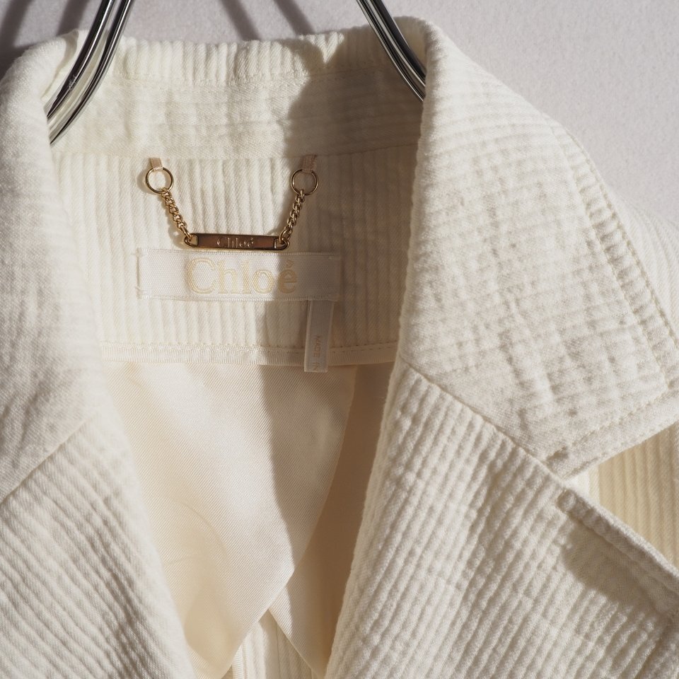 P0758P ▼Chloe クロエ▼ 22SS リネン サマーコーデュロイ ラップ テーラードジャケット ホワイト 34 / リネンジャケット 白 春夏 rb mks