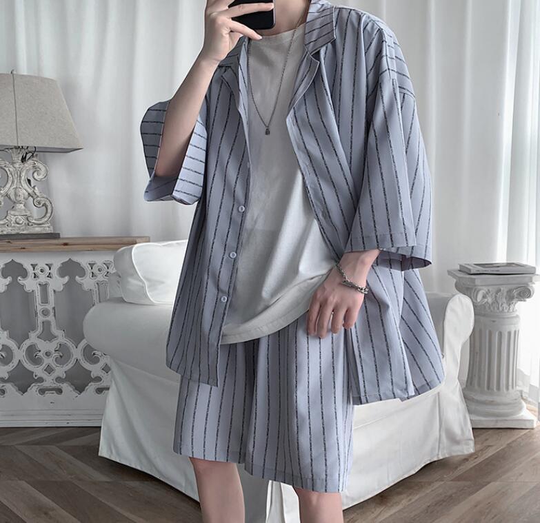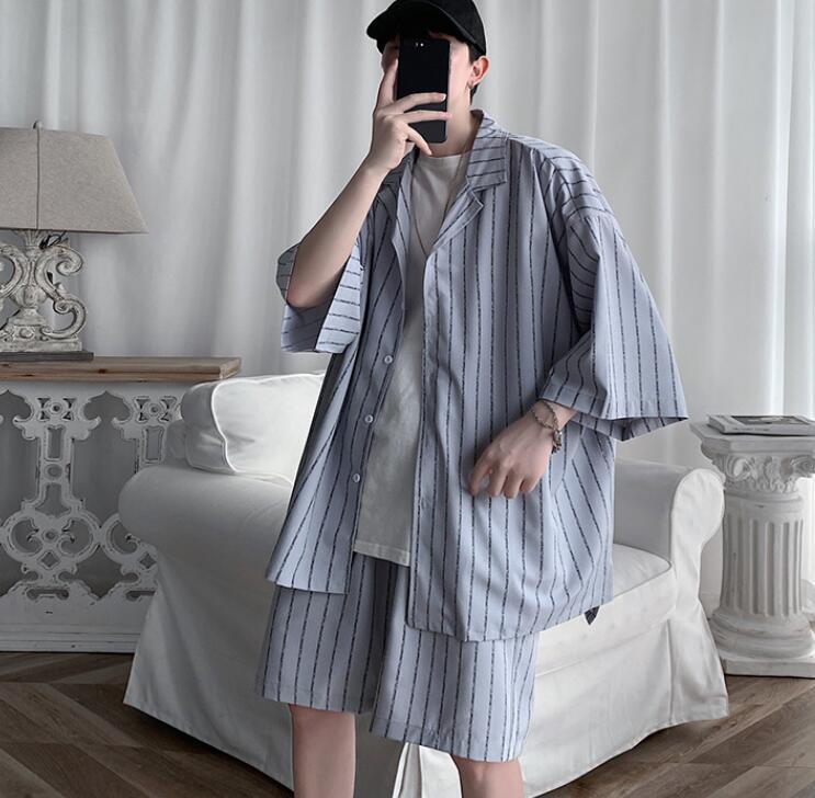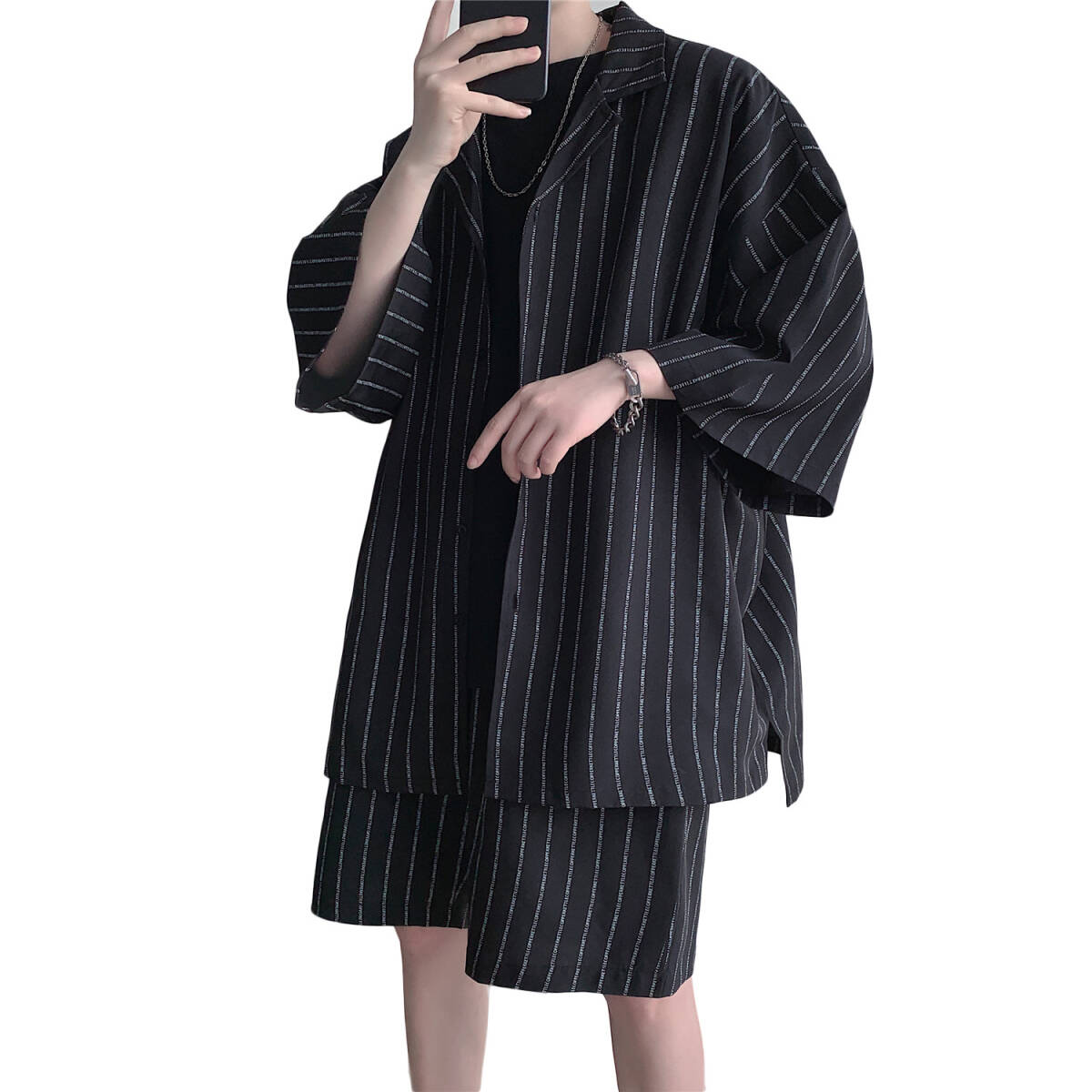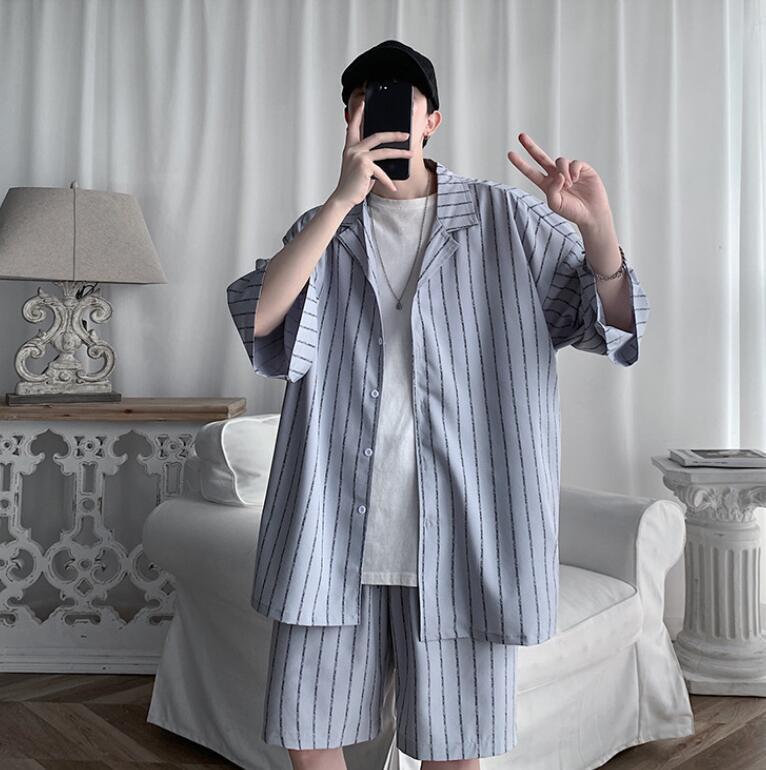 人気推薦メンズ 上下セット セットアップ シャツ+短パン 2点セット ストライプ柄 大きいサイズ 半袖 夏 ゆったり カジュアルM-5XL