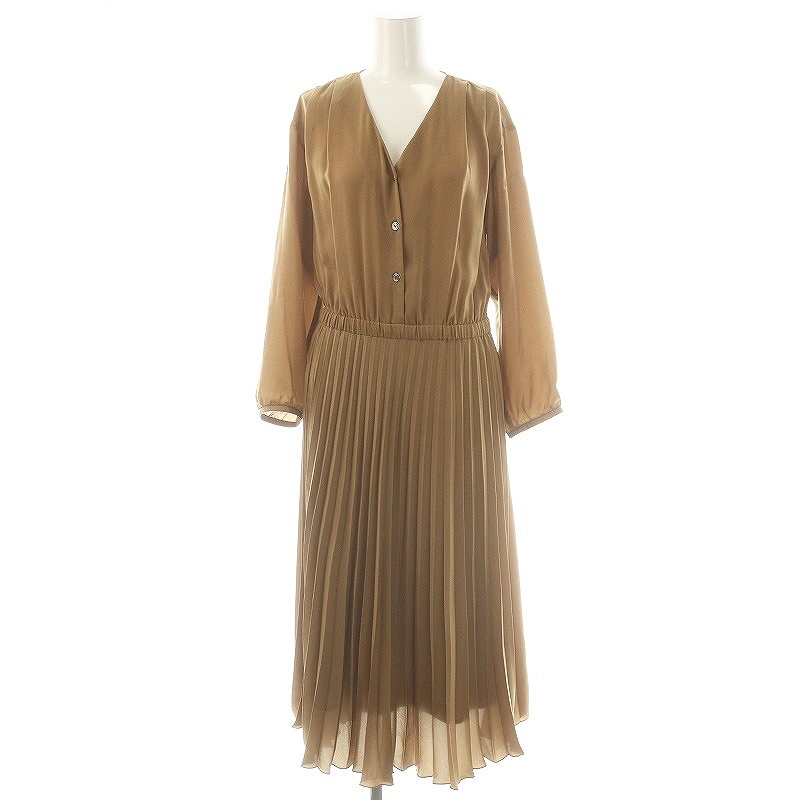 インディヴィ INDIVI プリーツ ワンピース 長袖 ロング 38 M ブラウン /SY ■OS レディース