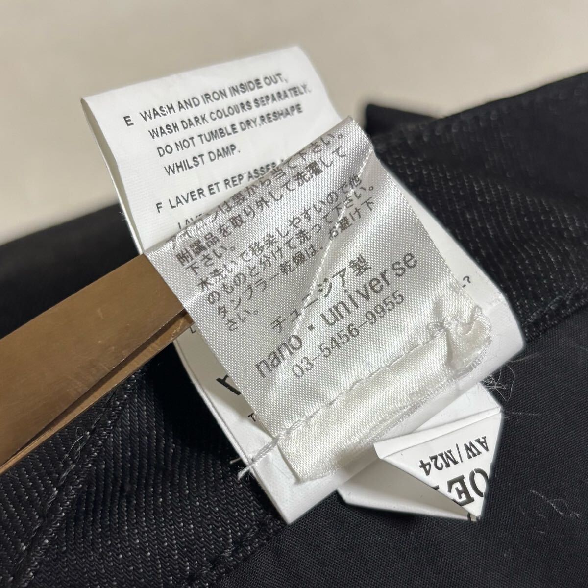 合わせやすいブラックデニム、細身のスッキリとしたスキニーシルエットの一着です。