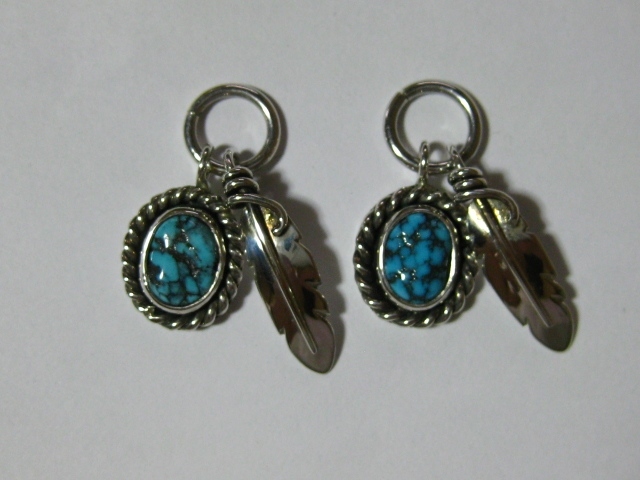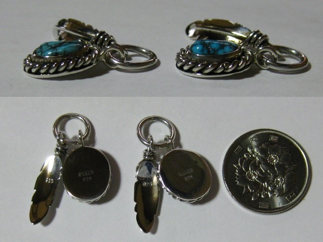 P24 ターコイズ・フェザー SILVER925 ペンダント トップ ペア