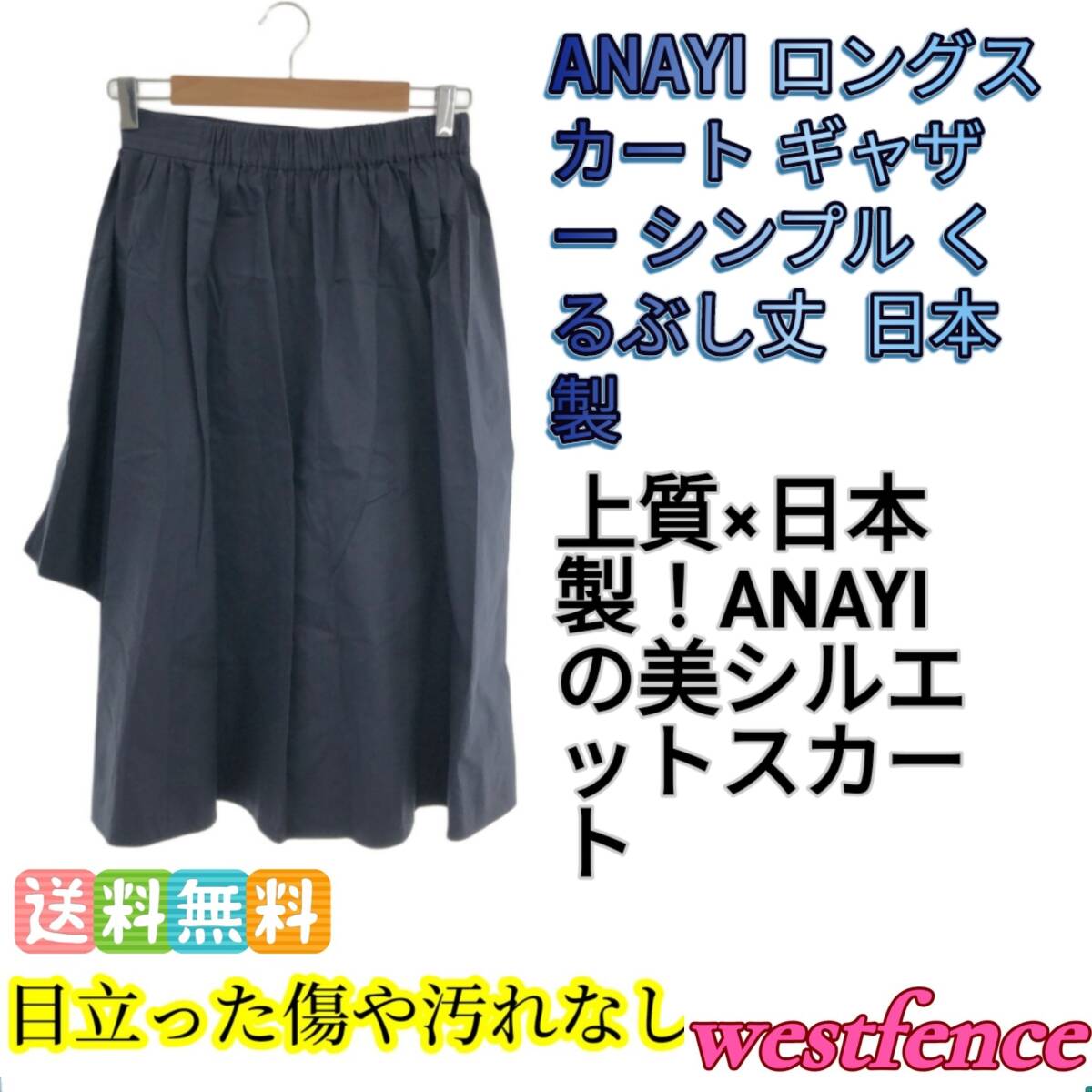 ANAYI アナイ スカート ロングスカート ギャザー シンプル くるぶし丈 レディース ネイビー 38 日本製