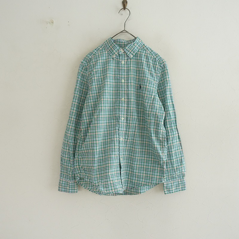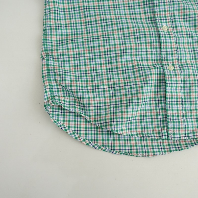| Polo Ralph Laurenのチェック長袖ボタンダウンシャツです。カラーはグリーン×配色のチェックです。コットンのブロード風生地を使用。透け感はございません。 Boy’sシリーズのチェックボタンダウンシャツですがメンズ・レディースも着用可能です。袖口は剣ボロ・カフスの2ボタン留め。バックは背ヨークの下にボックスタック入り。裾はラウンドカット。ポケットはなく、左胸にポニーのワンポイント刺しゅうがあしらわれております。 |