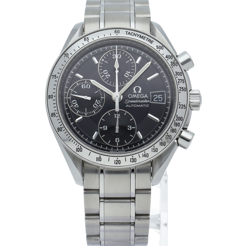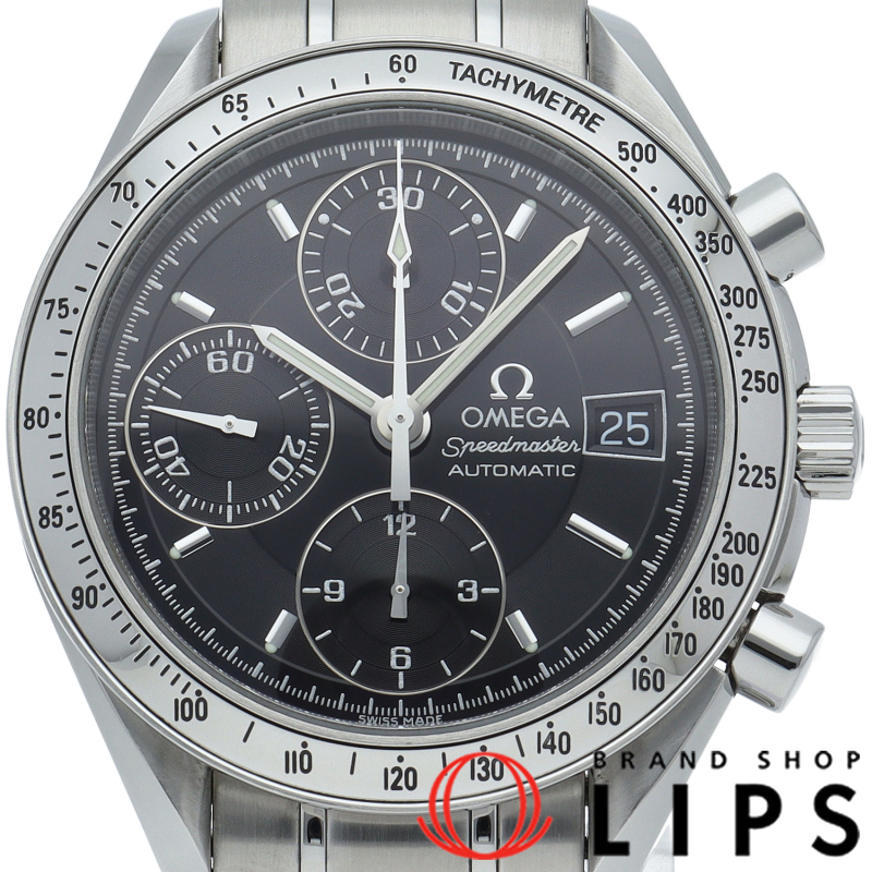 商品説明:オメガの代表的な人気シリーズ「スピードマスターデイト」。クロノグラフ・デイト表示機能付きと便利で実用性のある1本です。