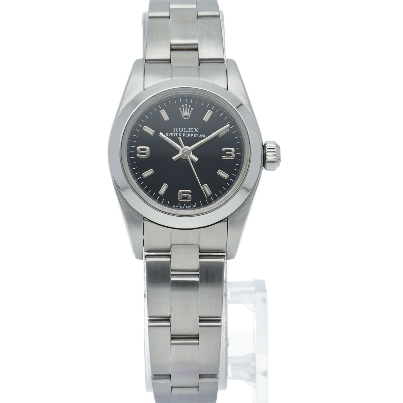 ロレックス オイスターパーペチュアル レディース時計 76080(Y) SS レディース時計 ブラック 仕上げ済 2002年 美