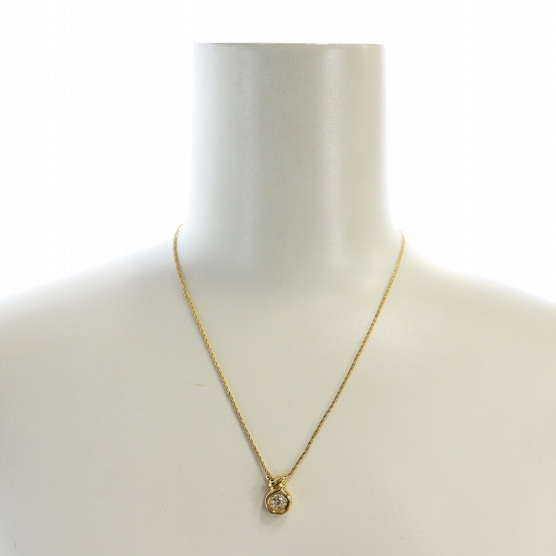 クリスチャンディオール Christian Dior ネックレス アクセサリー ペンダント ラインストーン ロゴ ゴールド色 ■OH レディース