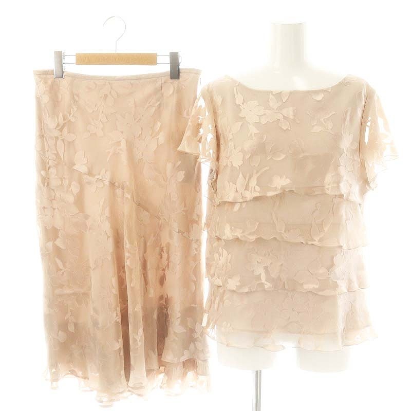23区 オンワード樫山 花柄 フリル ブラウス スカート セットアップ 44 スモークピンク /ES ■OS レディース