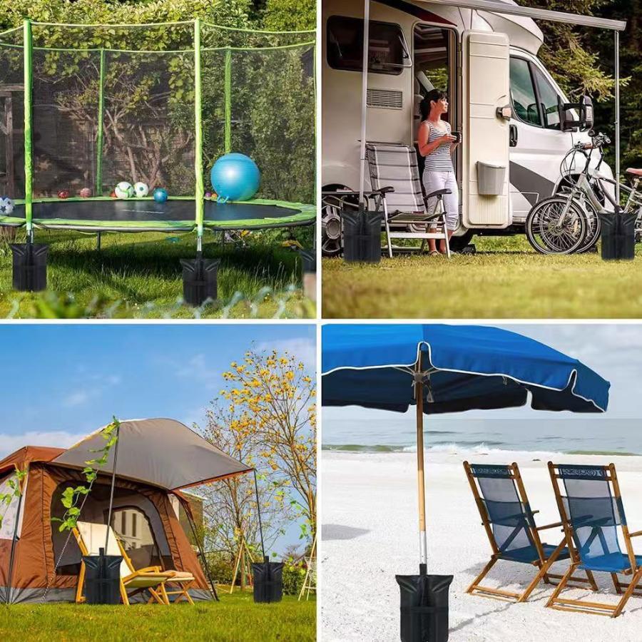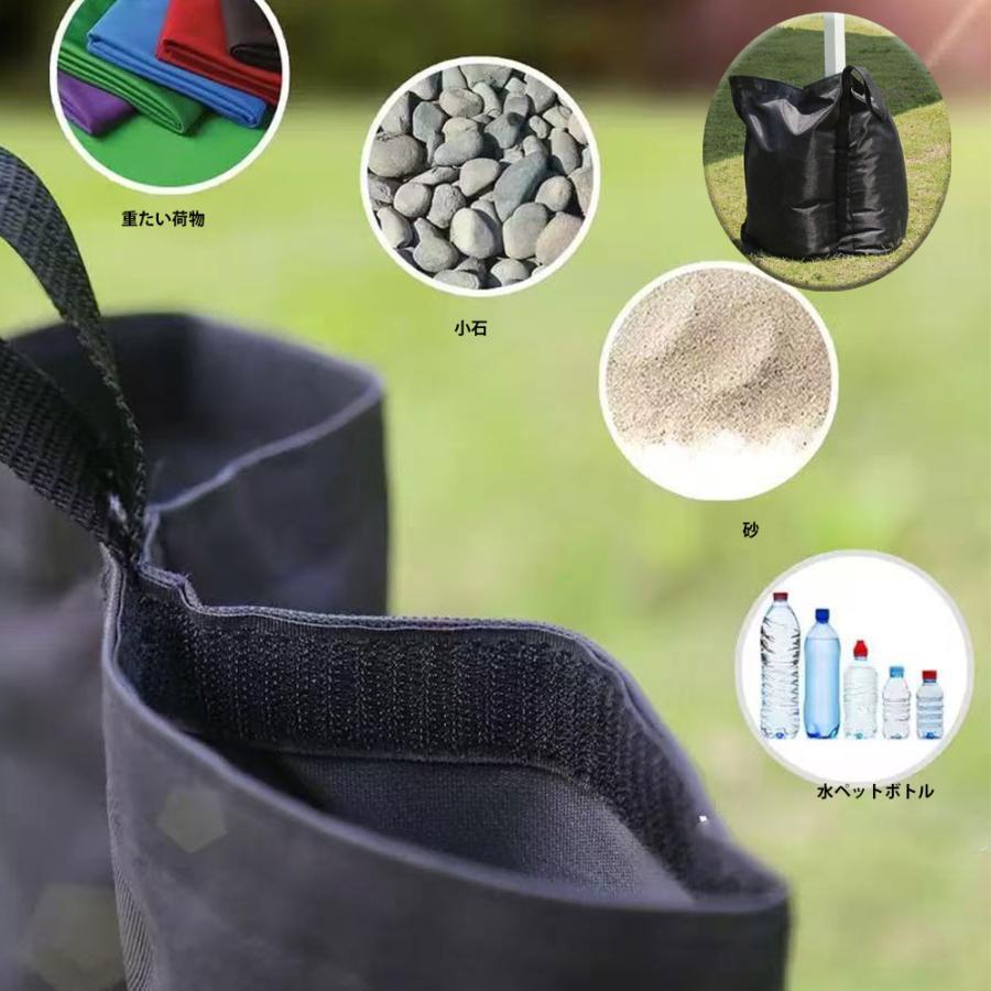 砂や小石などを入れるだけで、重りとしてタープやテントをしっかり固定できる「タープテント用マルチウェイトバッグ 」。