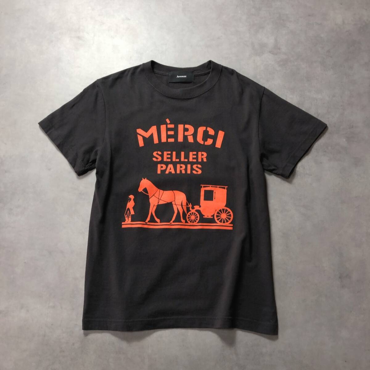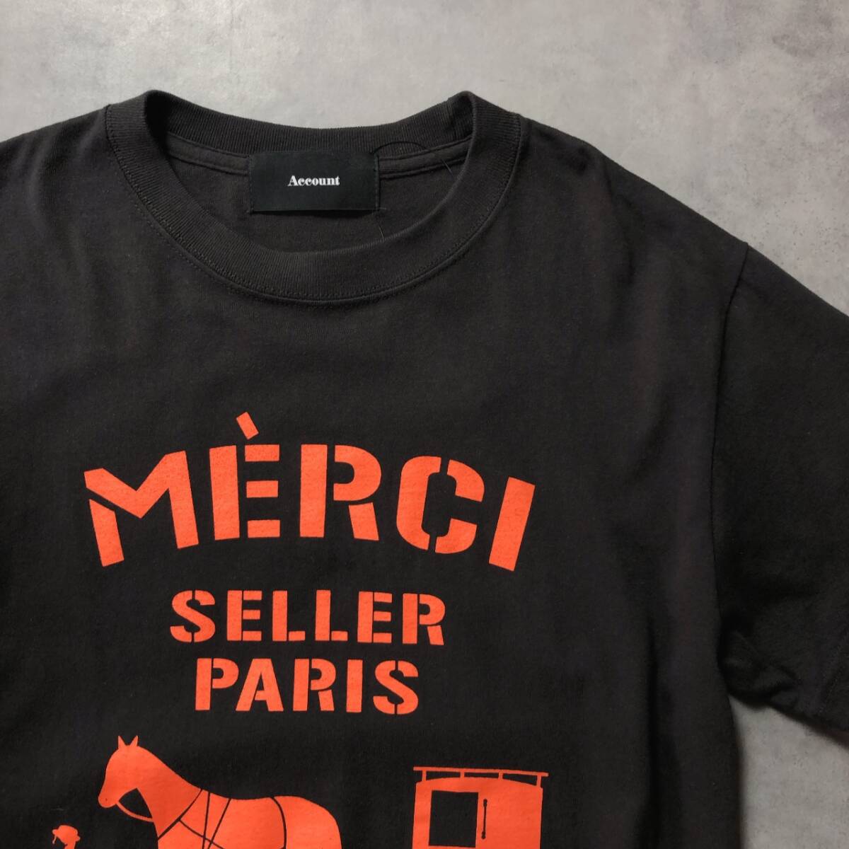 商品名 :WQ479●Account PARIS:MERCI SELLER PARISロゴプリントTシャツ●S● 黒に近いグレー アカウントパリス