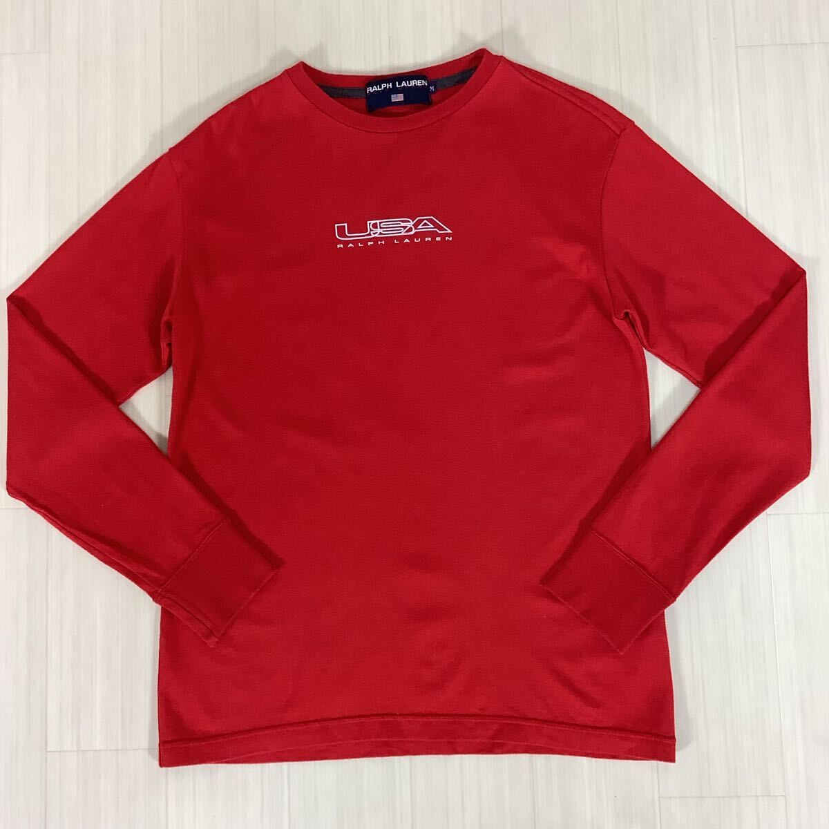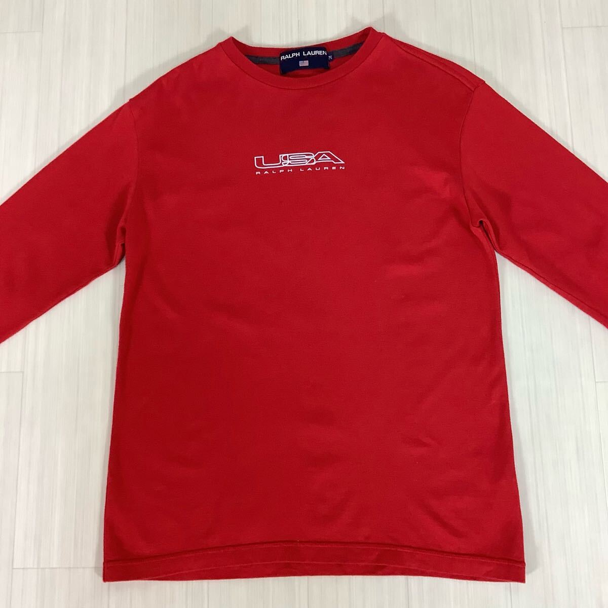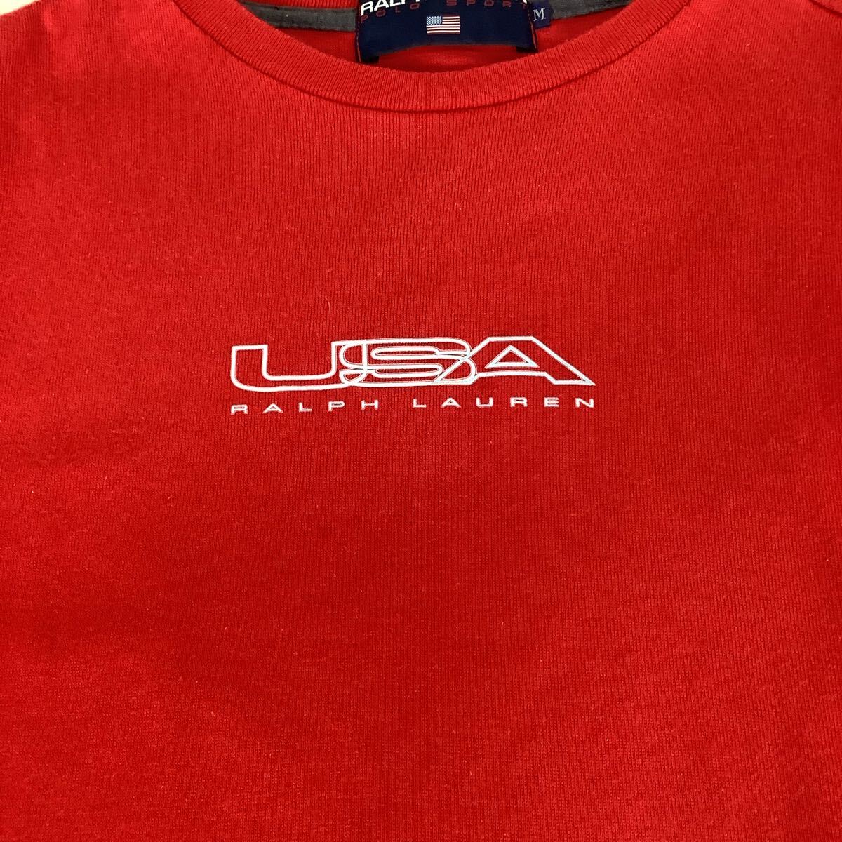 POLO SPORT RALPH LAUREN ポロスポーツ ロングスリーブシャツ ロンT M レッド赤 プリント センターロゴ カットソー