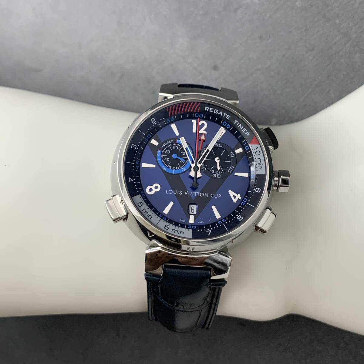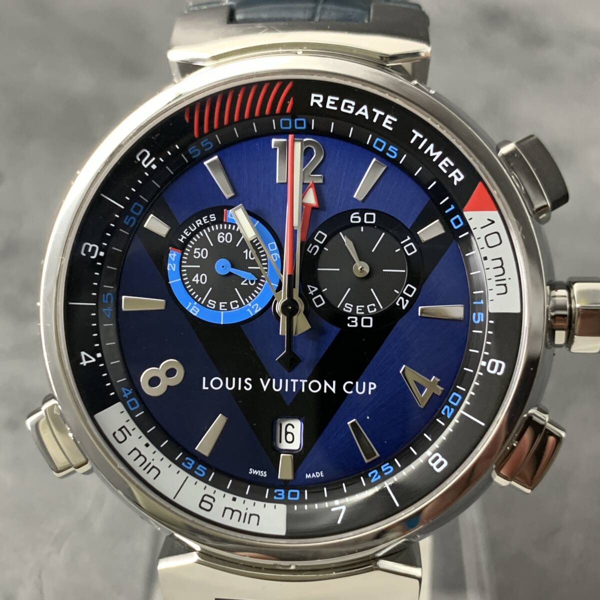 ルイヴィトン/LOUIS VUITTON タンブール レガッタ Q102D クロノグラフ デイト アラーム メンズ腕時計 モノグラム 外装仕上げ済み