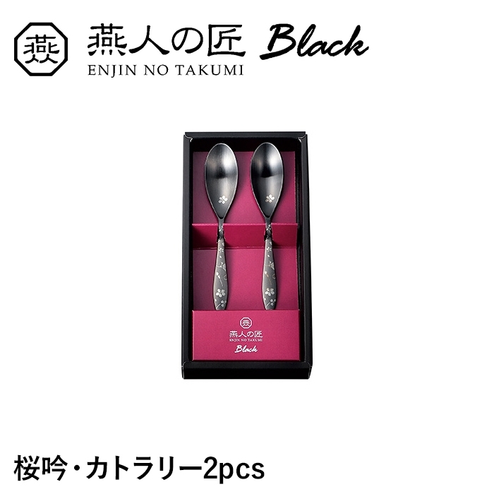 燕人の匠 ーBlackー ~MADE IN JAPAN TSUBAME~ 伝統の技と美の調和。 漆黒の中に幻想的な桜の花びらが舞う、桜吟・カトラリー2pcsです。 匠の技が冴え渡る、陰影際立つ漆黒のカトラリー。 医療用具などにも採用される先進の黒色酸化発色加工を施し、優美な色彩を表現しました。 塗装やメッキとは違い、剥離して混入する恐れもありません。 |