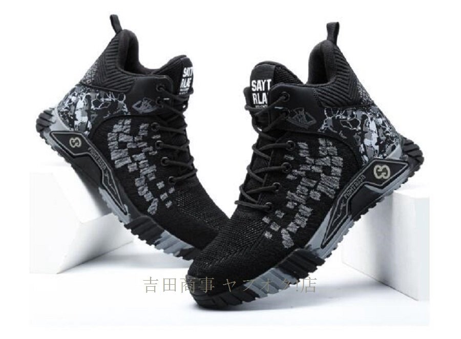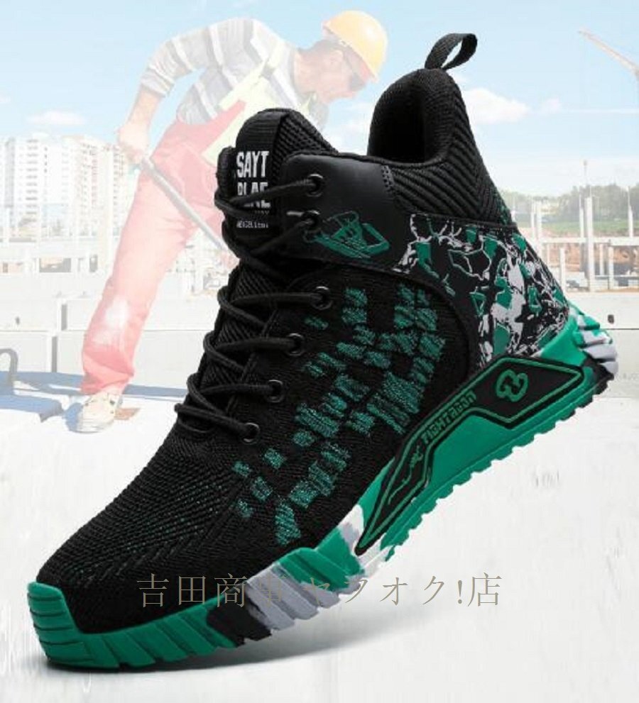 ★新品安全靴 ハイカット あんぜん靴 作業靴 通気性 軽量 鋼先芯入り 釘踏み抜き防止 幅広 厚底 サイズ:27cm ブルー