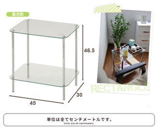 | 商品説明 | スチール×ガラスの組合せがスタイリッシュなガラスラック。 【仕様】 ■サイズ:[長方形]約幅45×奥行30×高さ46.5cm(約3.5kg) ■カラー:シルバー ■材質:[本体]5mm厚強化ガラス、スチールパイプ [塗装]クロムメッキ ■耐荷重:[ガラス1枚当たり]約2kg ■生産国:台湾 ■組立式(組立時間目安:約15分) |