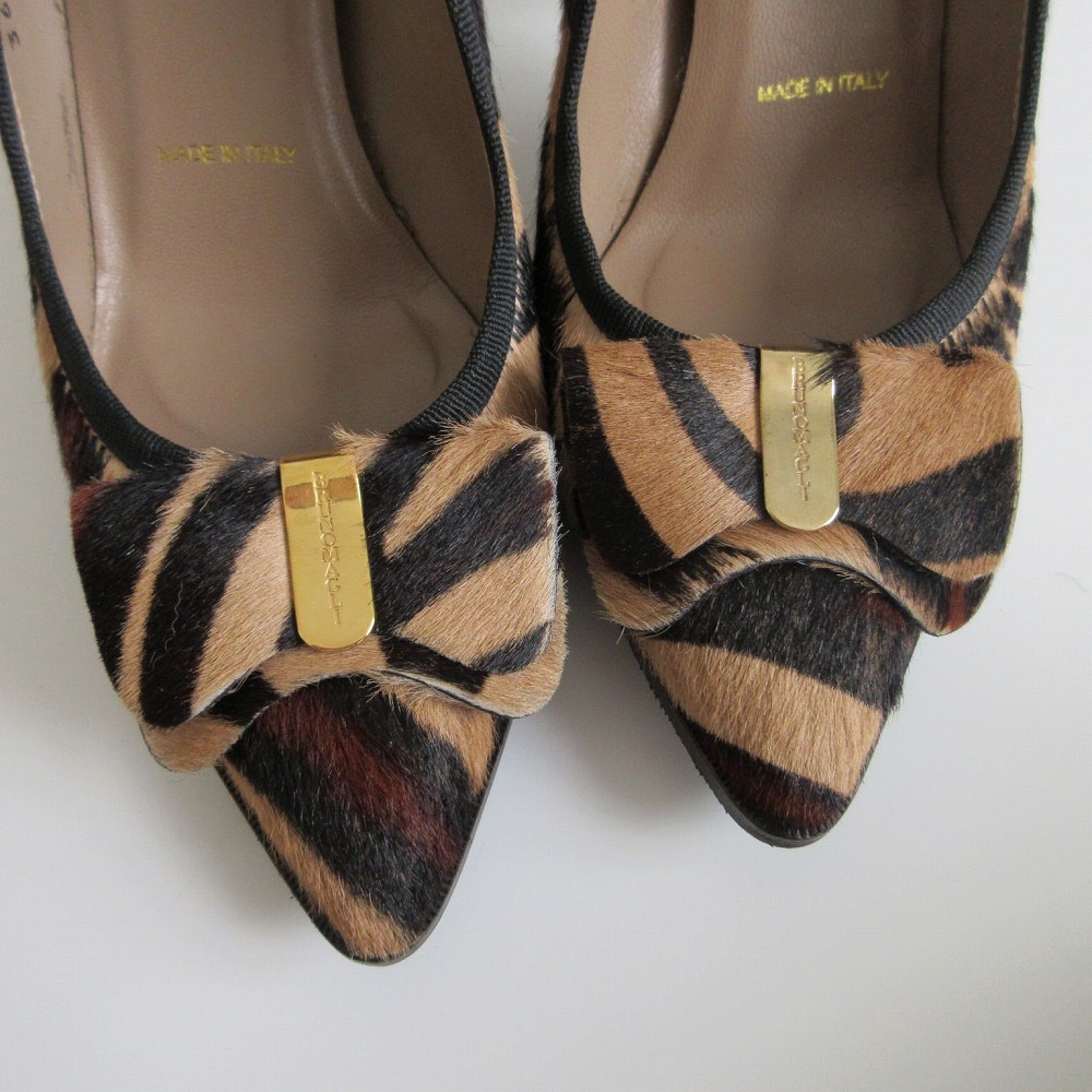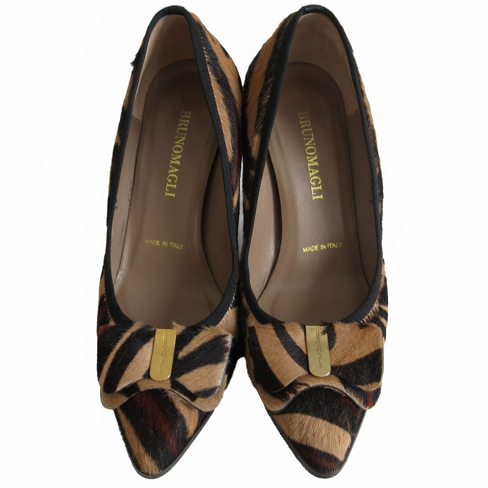 | 【BRUNOMAGLI ブルーノマリ ハラコ ゼブラ柄 リボンパンプス シューズ ブラウン サイズ23.5cm レディース】 | |