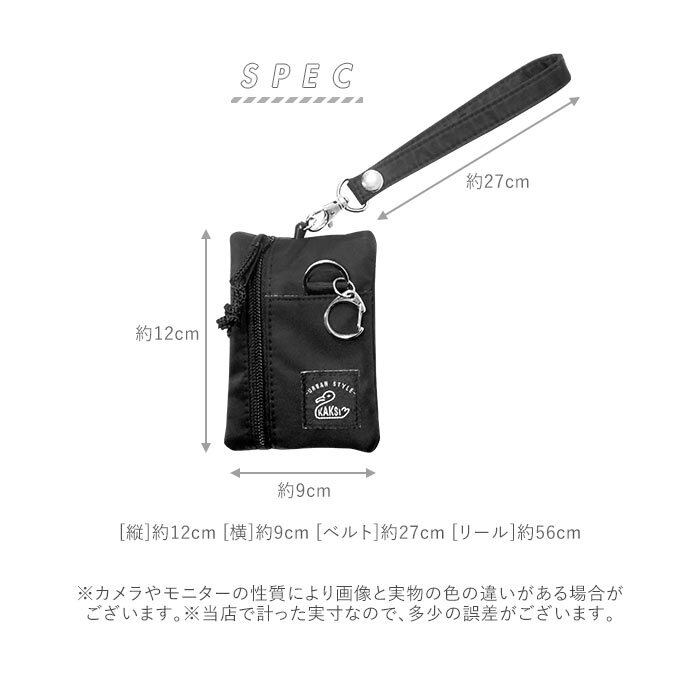 | 注意点 | ※ICカード等、貴重品を本製品に入れている場合は、必ずポケット、カバンの中に収納してください。盗難・紛失の恐れがあります。 ※リールは自動で巻き取ります。リールを伸ばしたまま強く引っ張ったり、無理な負担を掛けないでください。 ※乱暴に使用したり、紐を指に巻き付ける等のリールで遊ぶ行為は思わぬケガ・トラブルの原因になりますのでおやめください。 ※摩擦や水濡れ、密着等による多少の色落ちや色移行が発生する場合がございます。 ※小さな部品がありますので、小さなお子様が誤まって飲み込まないように、ご注意ください。 ※カメラやモニターの性質により、画像と実物の色の違いがある場合がございますのでご理解願います。 |