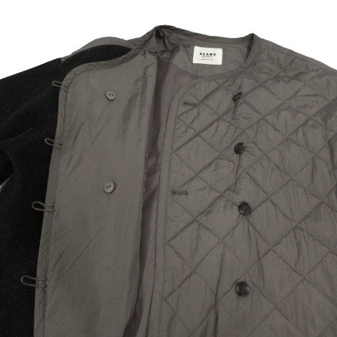 ビームスハート BEAMS HEART キルティング 切替 ノーカラー コート 43-19-0434-928 中綿入り チャコール レディース