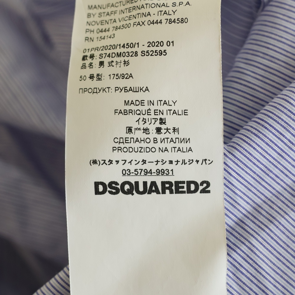 DSQUARED2 ディースクエアード 20SS 裾プレート付 ストライプ 長袖シャツ ブルー S74DM0328