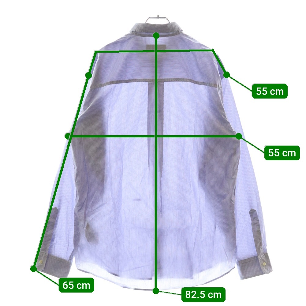 品名20SS 裾プレート付 ストライプ 長袖シャツ ブルー S74DM0328