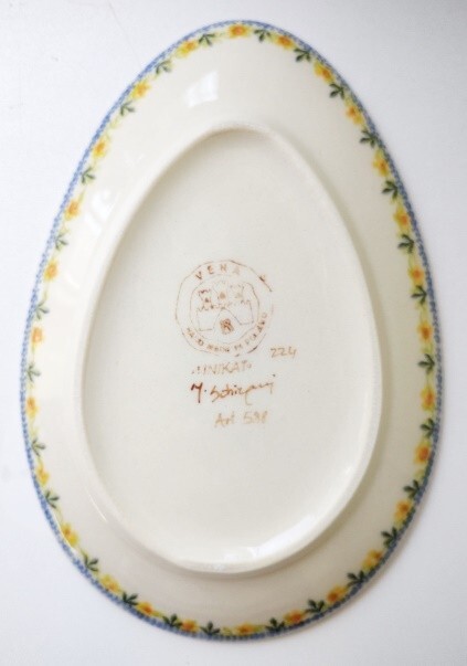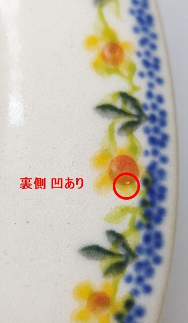 x789 ポーランド陶器 卵型プレート/皿 A お花畑のウサギ 黄色系 ART ポーリッシュポタリー 食器