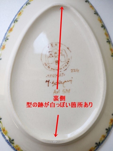 ポーランド ボレスワヴィエツ陶器 お花畑のウサギ 黄色系 ART柄 卵型プレート/皿 Aです。
